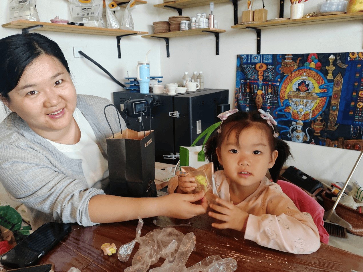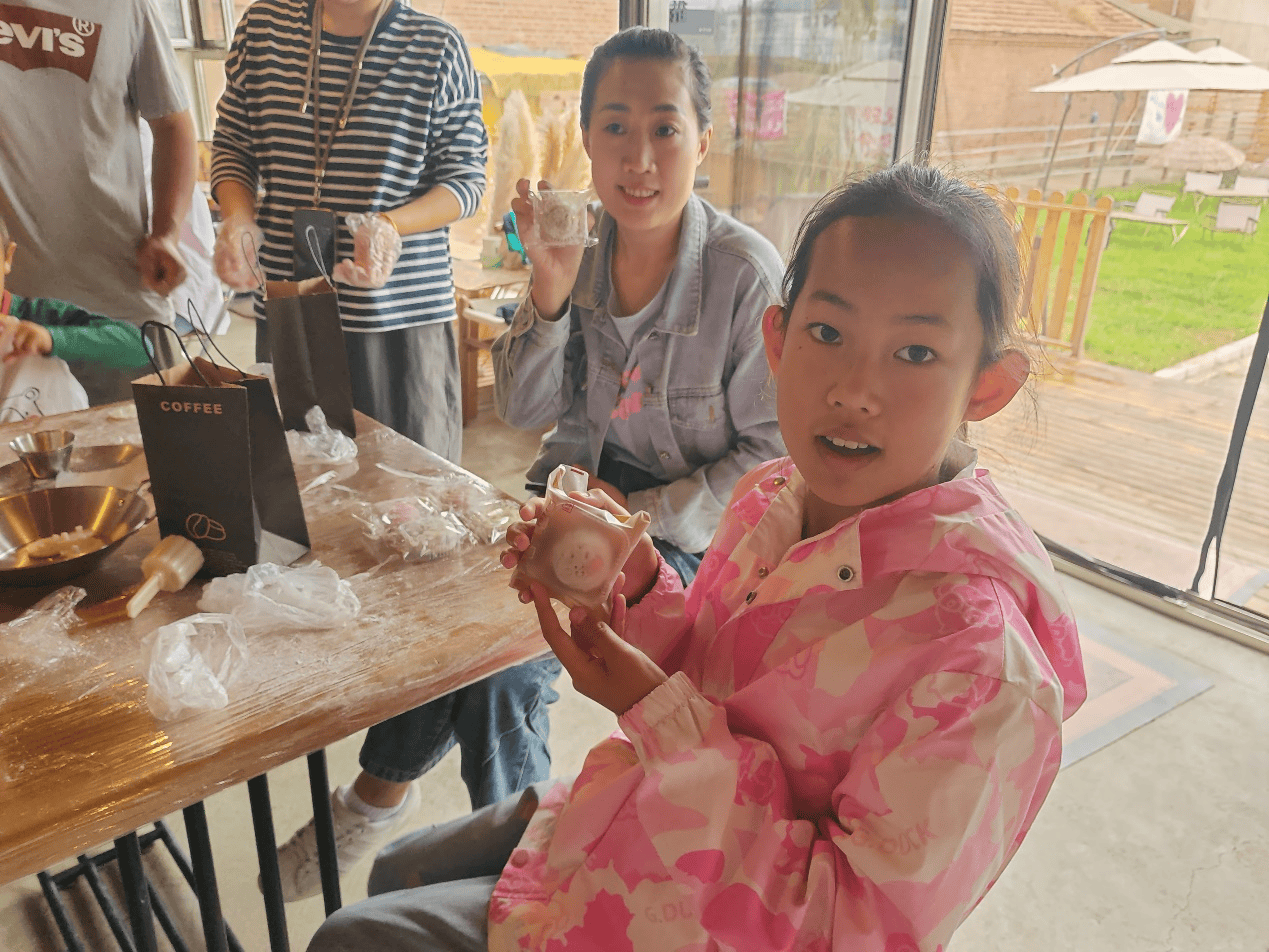 当一盘盘色彩缤纷、造型精美的冰皮月饼摆上桌时,现场格外热闹。居民们纷纷拍照留念,有的家庭把作品拼成“团圆”的造型,有的孩子则开心地和父母一起合影。