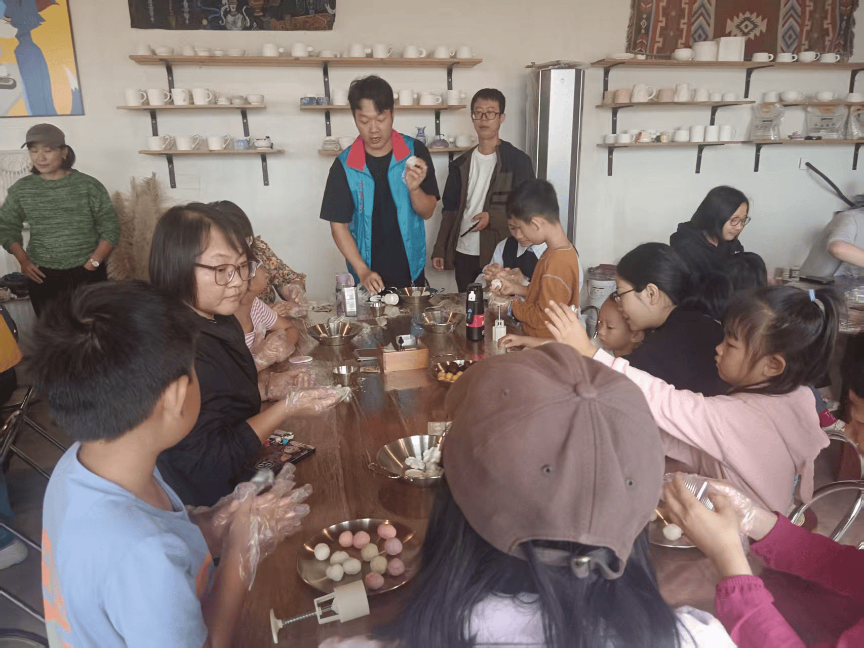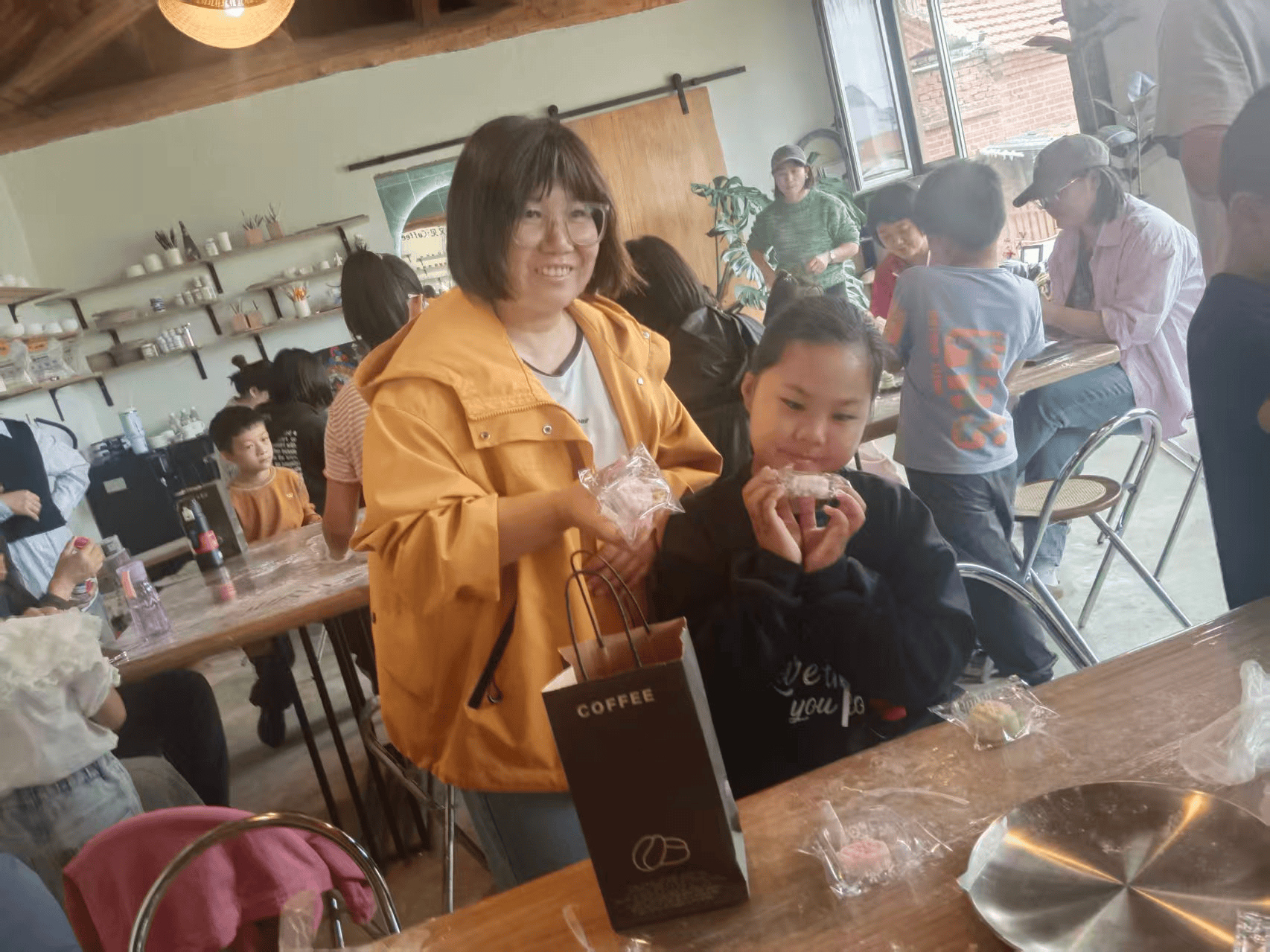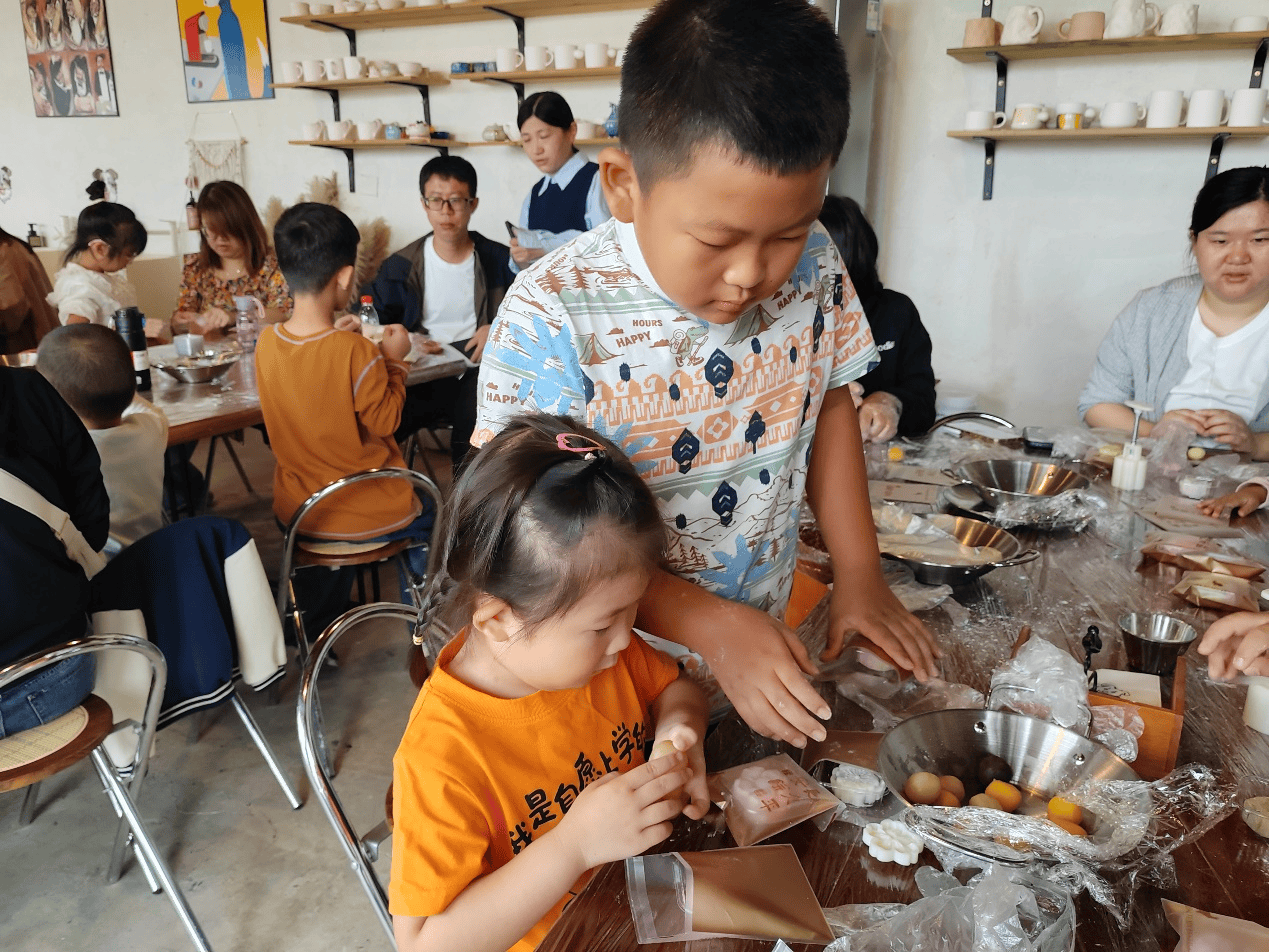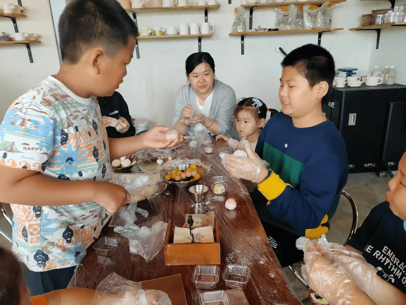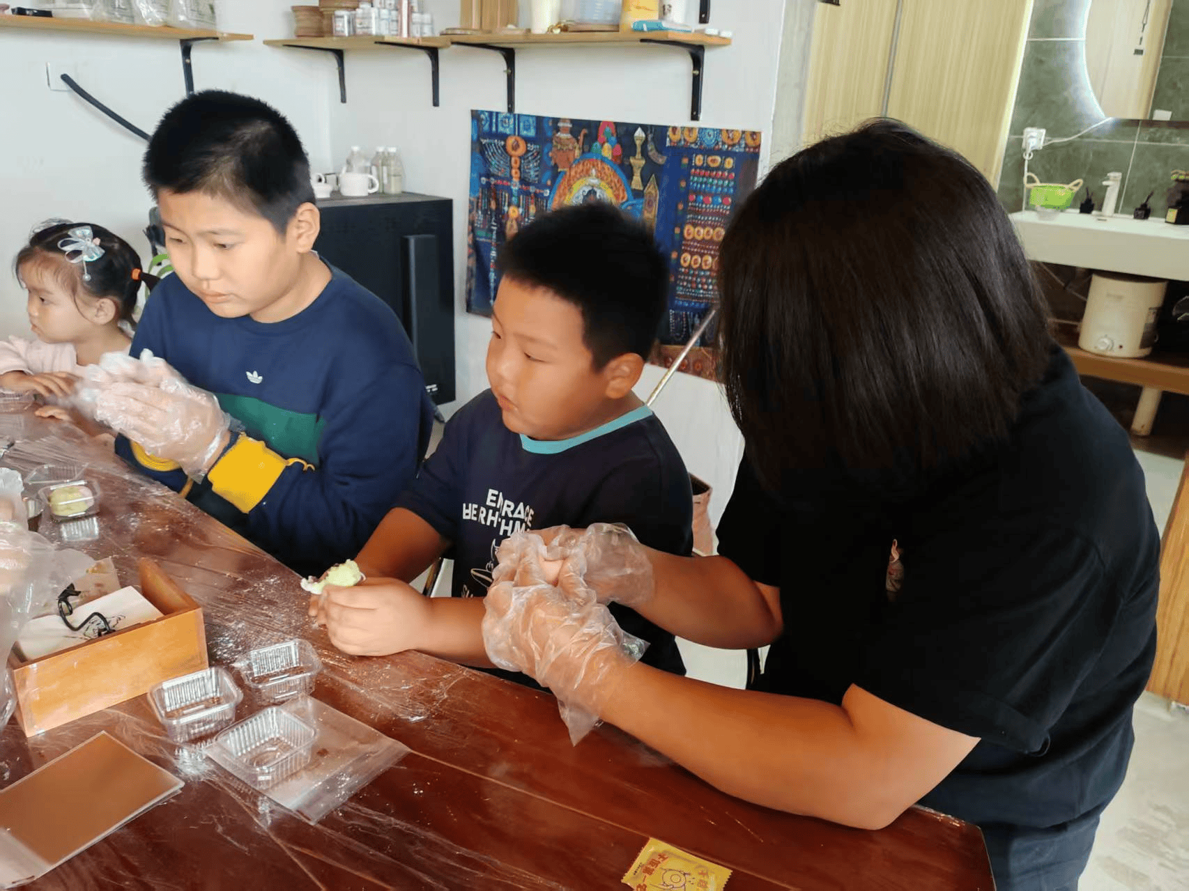 制作环节开启,活动室气氛达到高潮。家长和孩子们一起和粉、搓团、包馅,配合默契。一个个晶莹剔透、纹路清晰的冰皮月饼在手中诞生,孩子们看到成品时兴奋地举起来展示,脸上洋溢着纯真的笑容。大家互相交流制作心得,不时传来阵阵笑声,节日的喜悦在空气中弥漫开来。