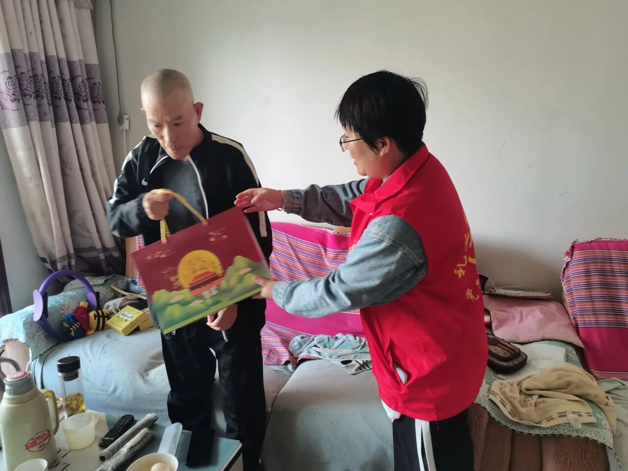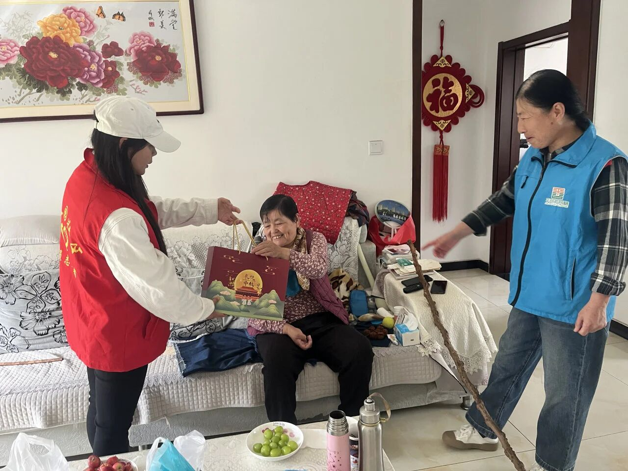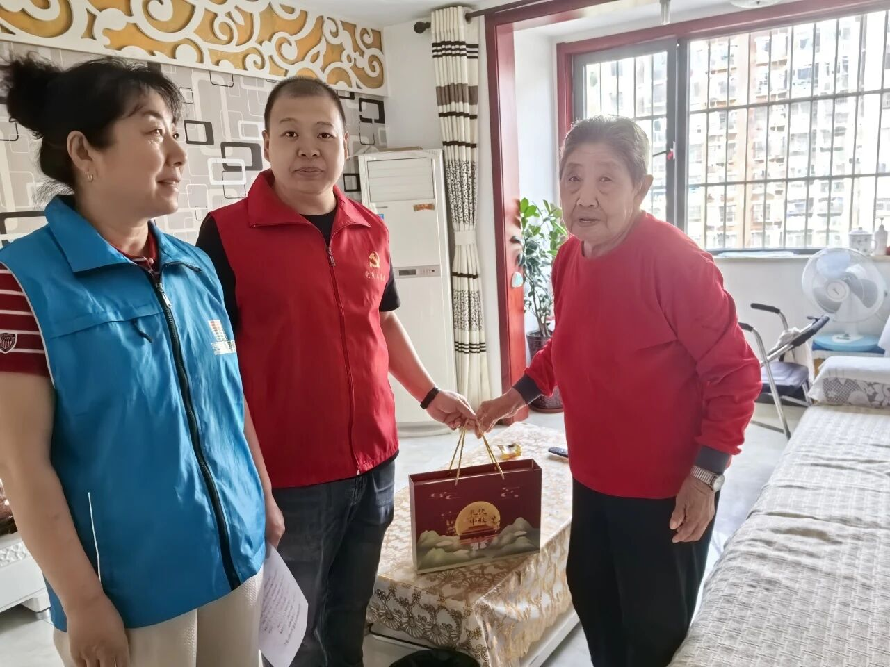 活动结束后,社区工作人员与志愿者带着手工月饼,先走访老党员李连增家,送上月饼与祝福;随后慰问社区特殊群体,关切询问生活近况。