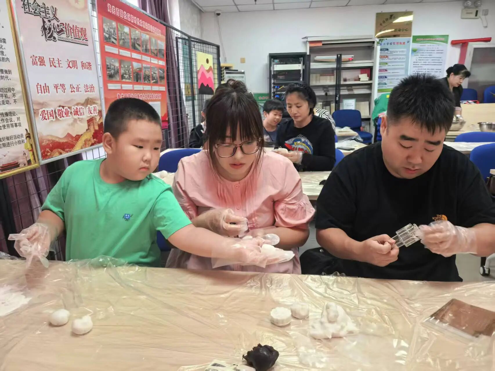 活动伊始,社工首先向在场的亲子家庭讲述了中秋节的各种习俗,并详细说明了制作冰皮月饼过程中的安全规范与文明参与要求。本次活动不仅让青少年体验中秋传统文化、感受手工制作月饼的乐趣,更重要的是要将大家共同制作的月饼送到辖区高龄老人和老党员家中,让老人们感受到社区的关怀与温暖,同时也为青少年树立尊老敬老的良好意识,增强他们对社区治理的参与感。