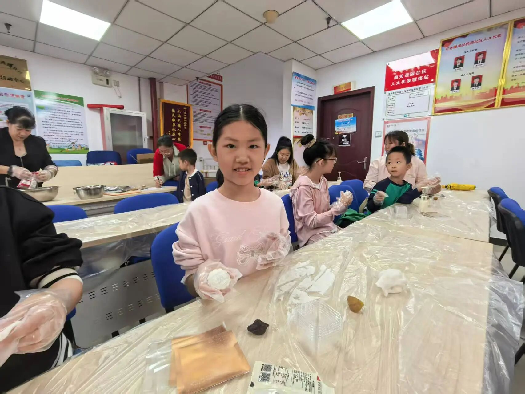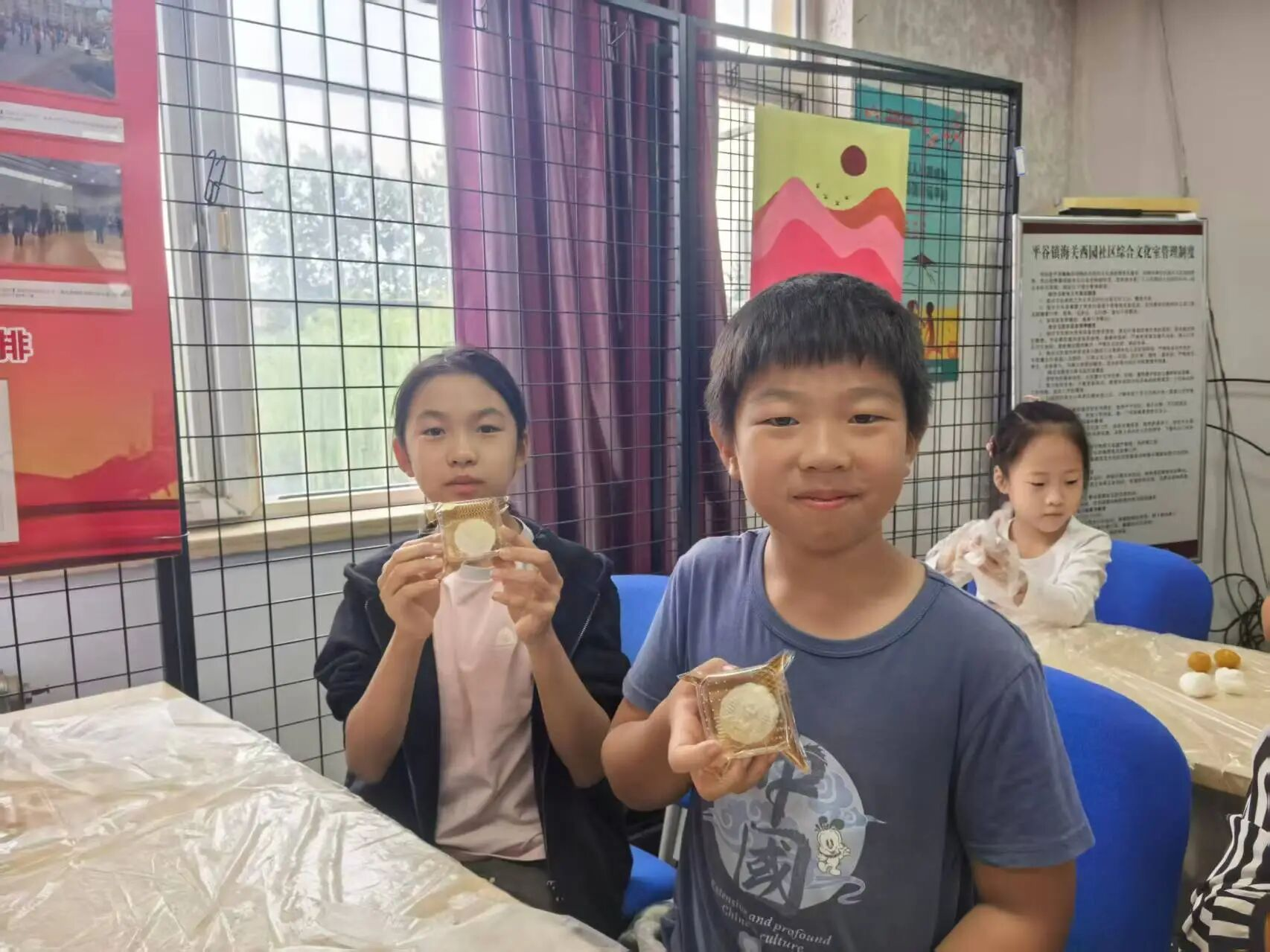 在社工的细心指导下,孩子们兴致勃勃地投入到月饼制作中。揉面、包馅、压模,每一个步骤都认真完成,家长们则在旁协助,现场气氛温馨而热闹。不一会儿,一个个造型精致、饱含心意的冰皮月饼便在孩子们的手中诞生了。考虑到老人们的健康需求,社区还特意准备了低糖的健康食材,从细节处体现对老人们的关爱。