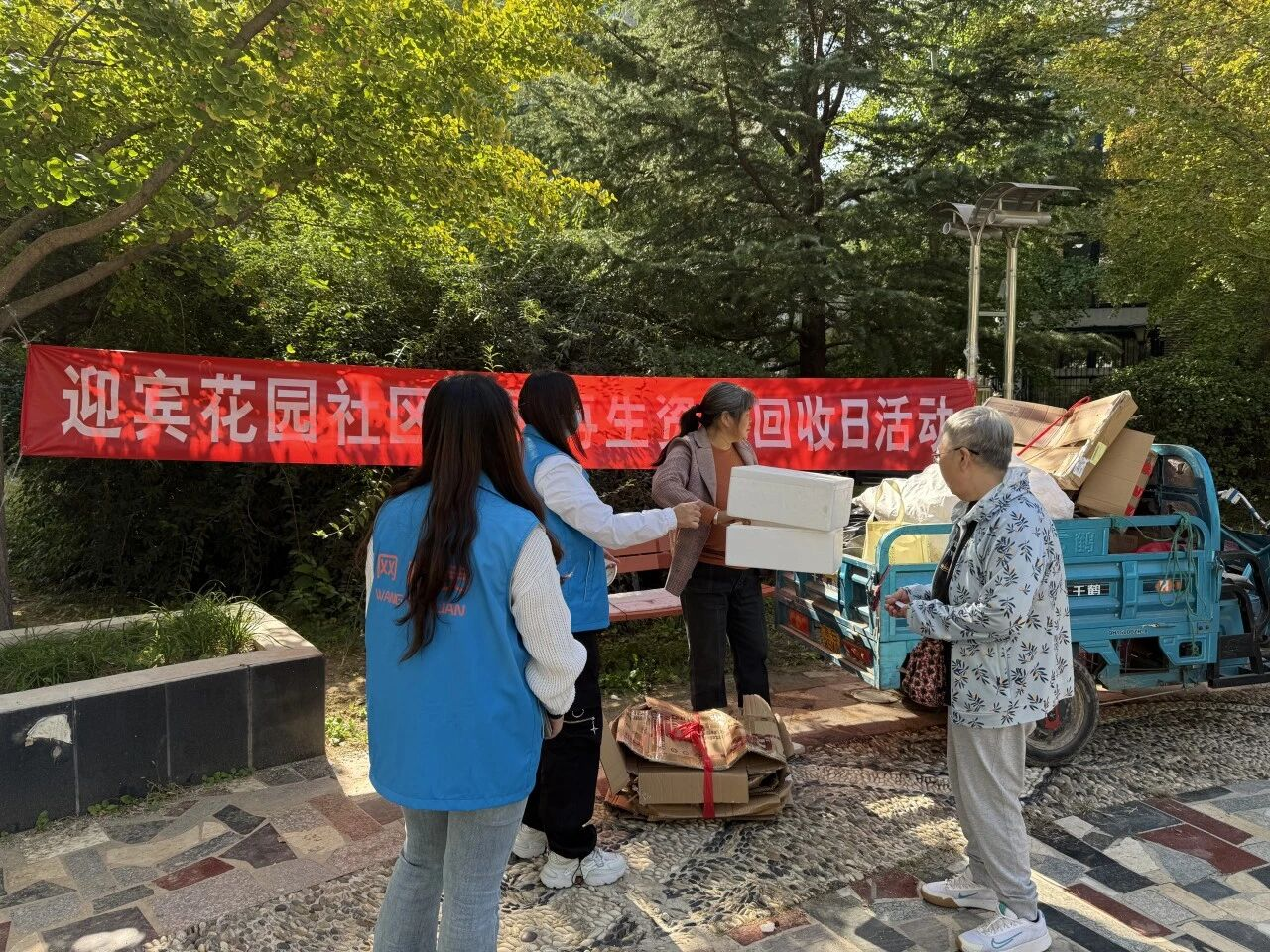 为倡导绿色低碳生活新风尚,提升居民垃圾分类意识,以干净整洁社区面貌迎接国庆,9月30日上午,迎宾花园社区开展再生资源回收日活动,通过“现场集中回收+主动上门回收”的便民模式,赢得了居民们的广泛好评。