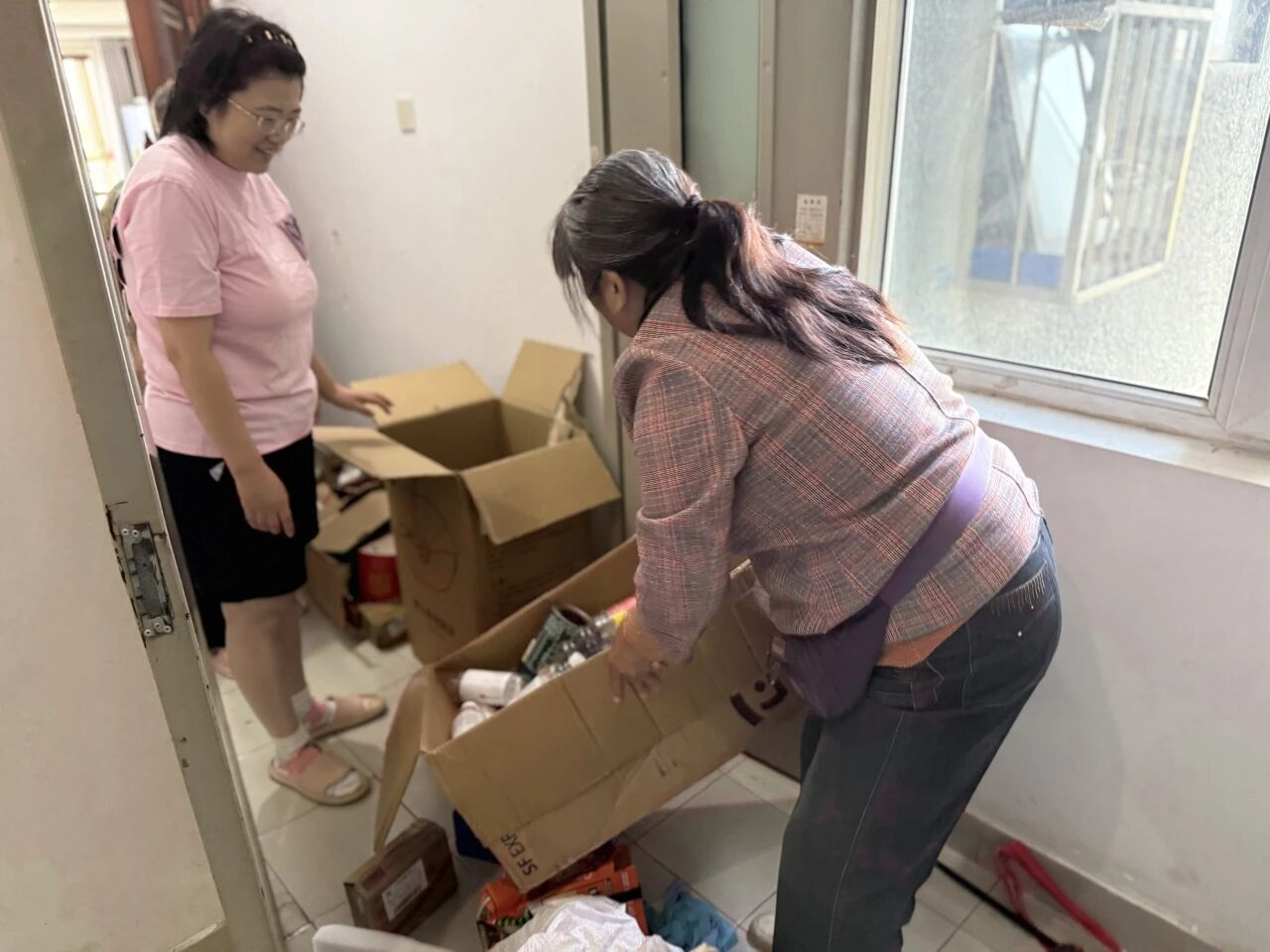 与此同时,一支由网格员组成的服务小队,主动上门为不方便来现场的居民提供回收服务,帮助他们搬运和清运家中积存的可回收物,将便民服务直接送到家门口。