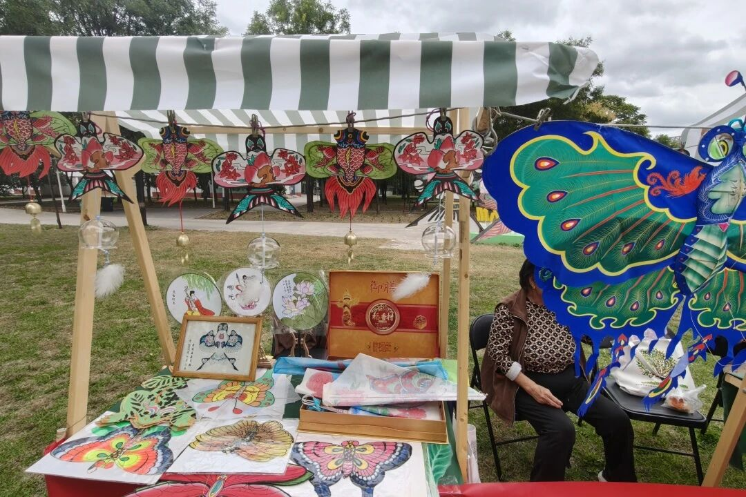 此次非遗展示以金海湖镇本土非遗项目为核心,多位非遗传承人携代表性技艺亮相:曹氏风筝制作技艺传承人李秀云,承曹氏技艺精髓,将扎、糊、绘、放四大工序融于一体,将平谷文化元素注入风筝设计,让作品兼具平谷特色与艺术美感;红石坎村刺绣传承人张晓英,突破传统刺绣边界,在作品中融入时尚与艺术元素,形成图案简练朴拙、色彩丰富明快、充满生命张力的独特风格;药王庙庙会传承人常高禄道长,带来庙会香包文化节的手工香包制作展示。截至目前,平谷药王庙已成功举办第十八届非遗庙会、第三届香囊文化节,成为地方民俗文化的亮眼名片。