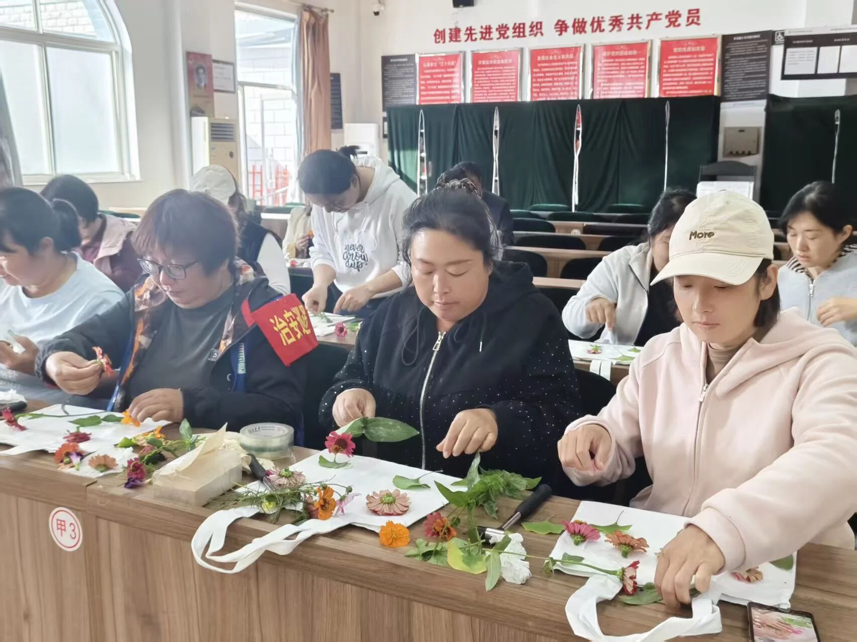 近日,“月满华诞 手作传承”非遗植物拓染培训活动走进大峪子村,20余名学员在白色帆布袋上拓印出独属于双节的浪漫与敬意。