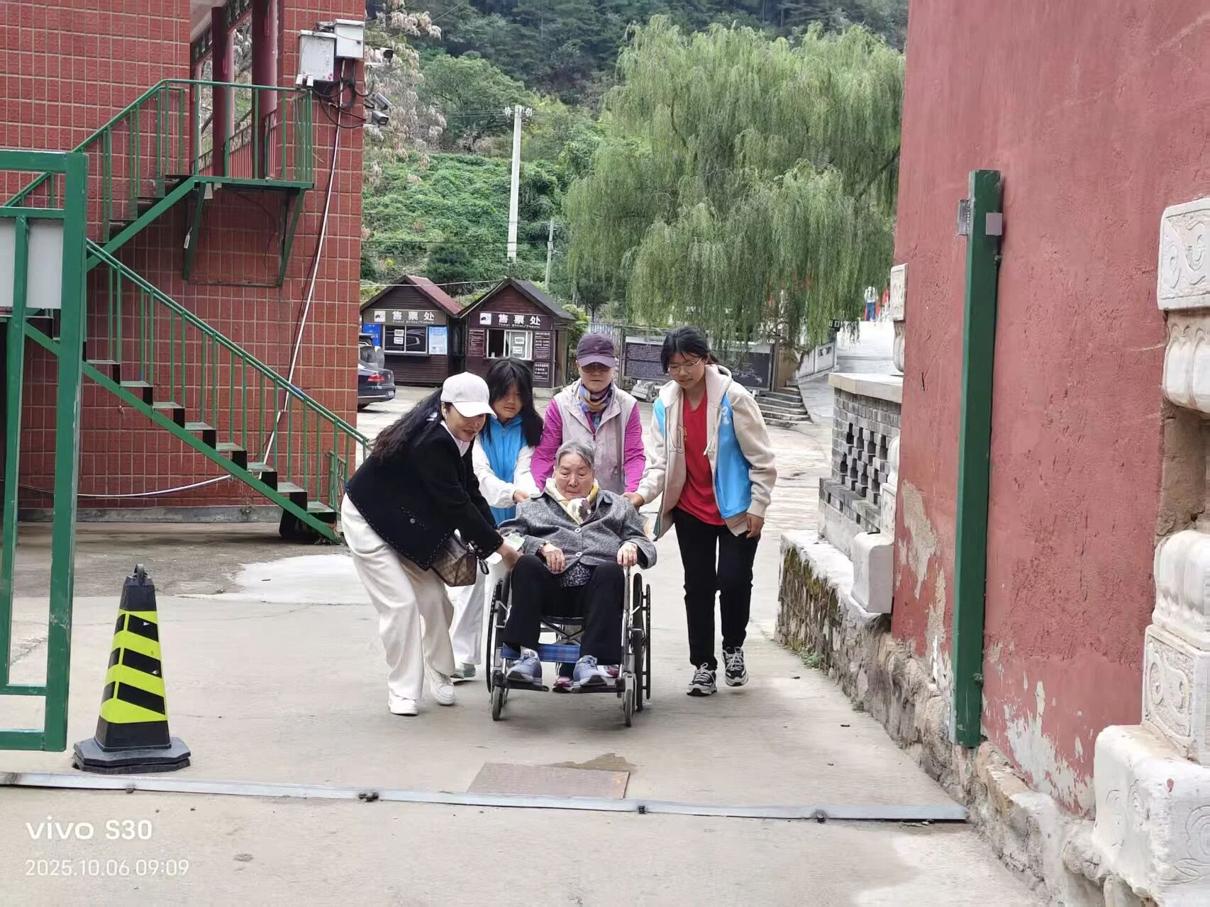 温情在特别关照中流淌。来自市区的王奶奶腿脚不便,乘坐轮椅在家人的陪伴下游览景区。志愿者们见状主动上前,稳稳地扶住轮椅,引导其通过无障碍通道。这份及时的帮助与关怀,让王奶奶倍感暖心,连连称赞。