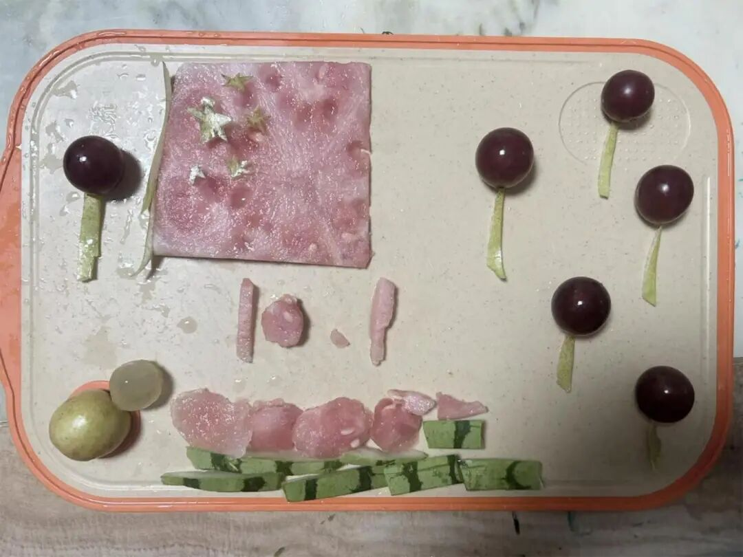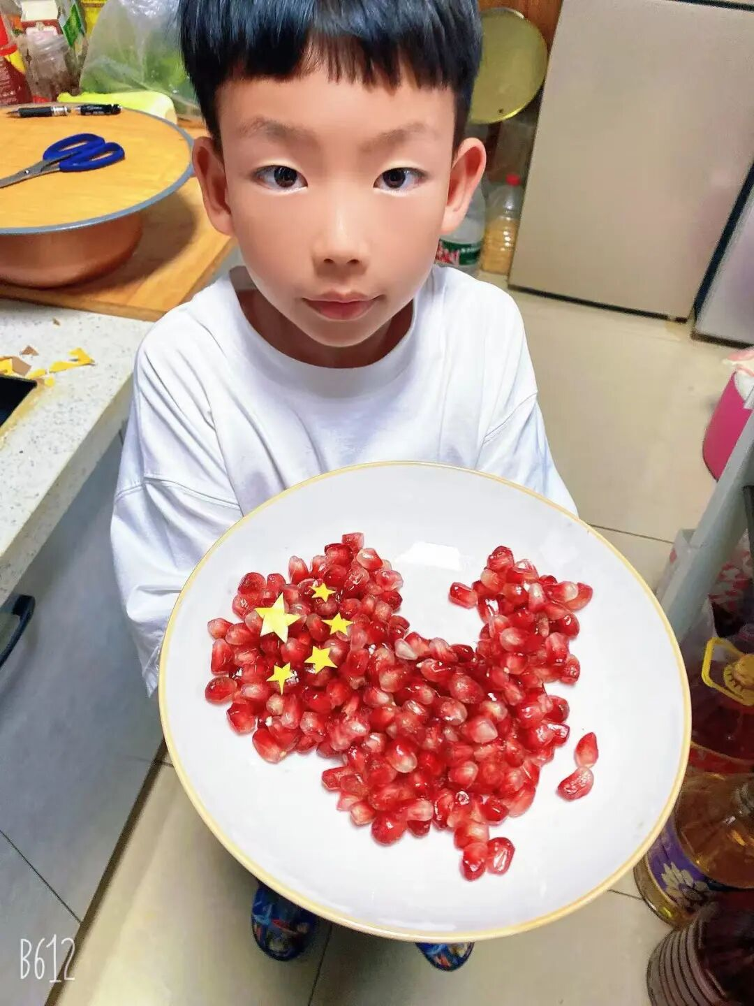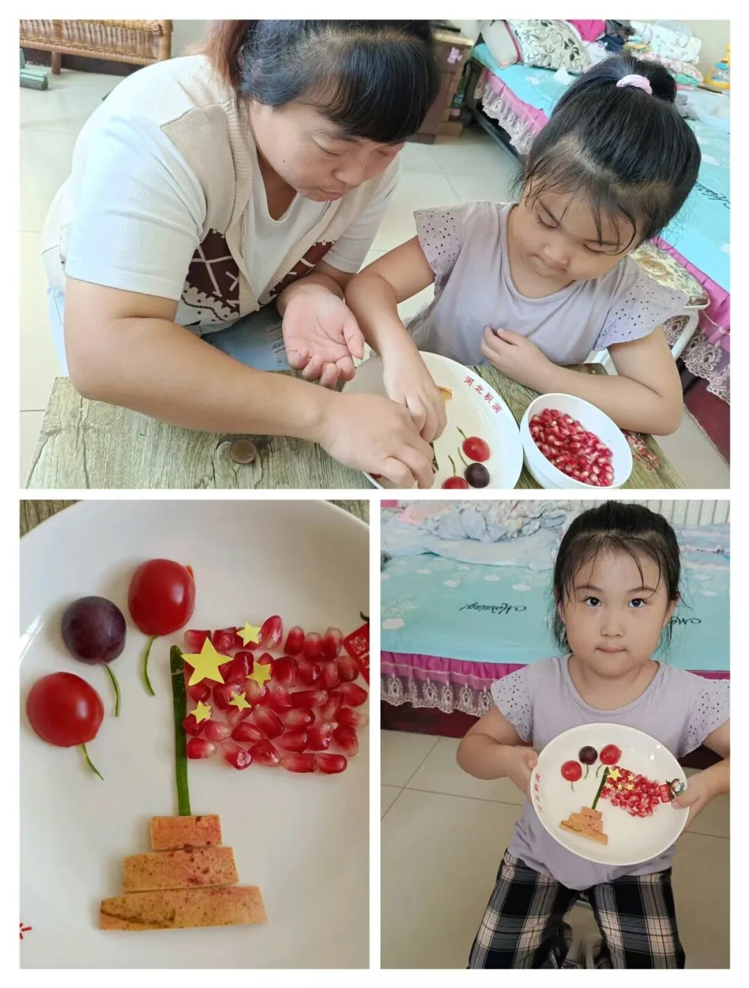 “小手拉大手,双节乐悠悠”,学校发起“亲子共做双节美食”活动,家长与孩子一同走进厨房,用创意与爱意制作国庆中秋主题水果拼盘,每一份拼盘都充满巧思。