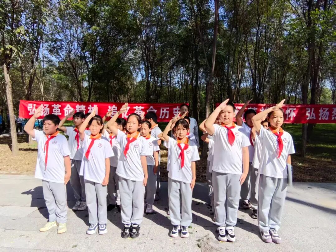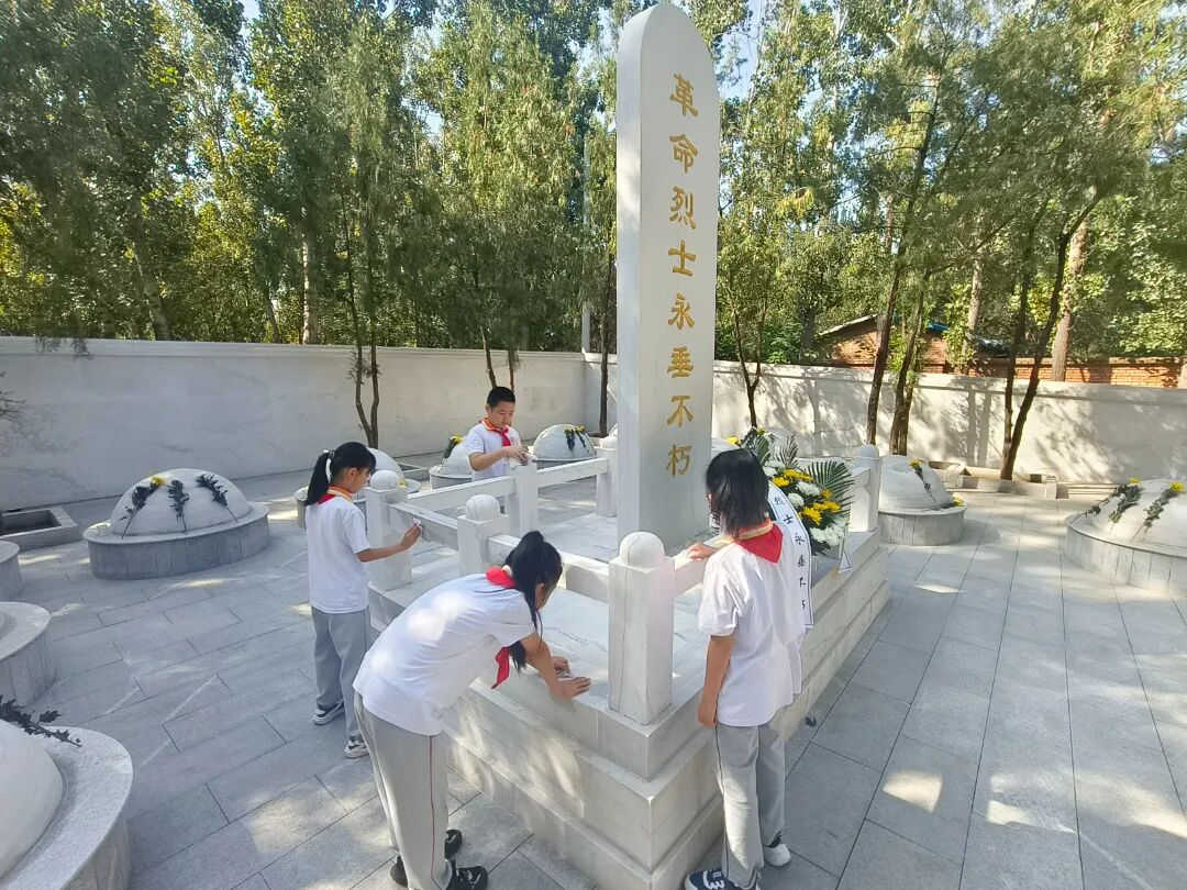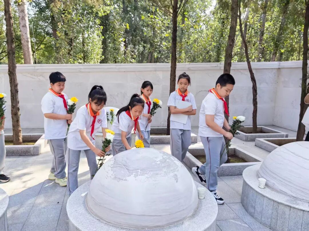在烈士日来临之际,学校组织少先队员开展烈士日公祭活动。同学们小心翼翼地擦拭烈士墓碑,将鲜花轻轻放在碑前,承载着对先烈的深切缅怀与崇高敬意。