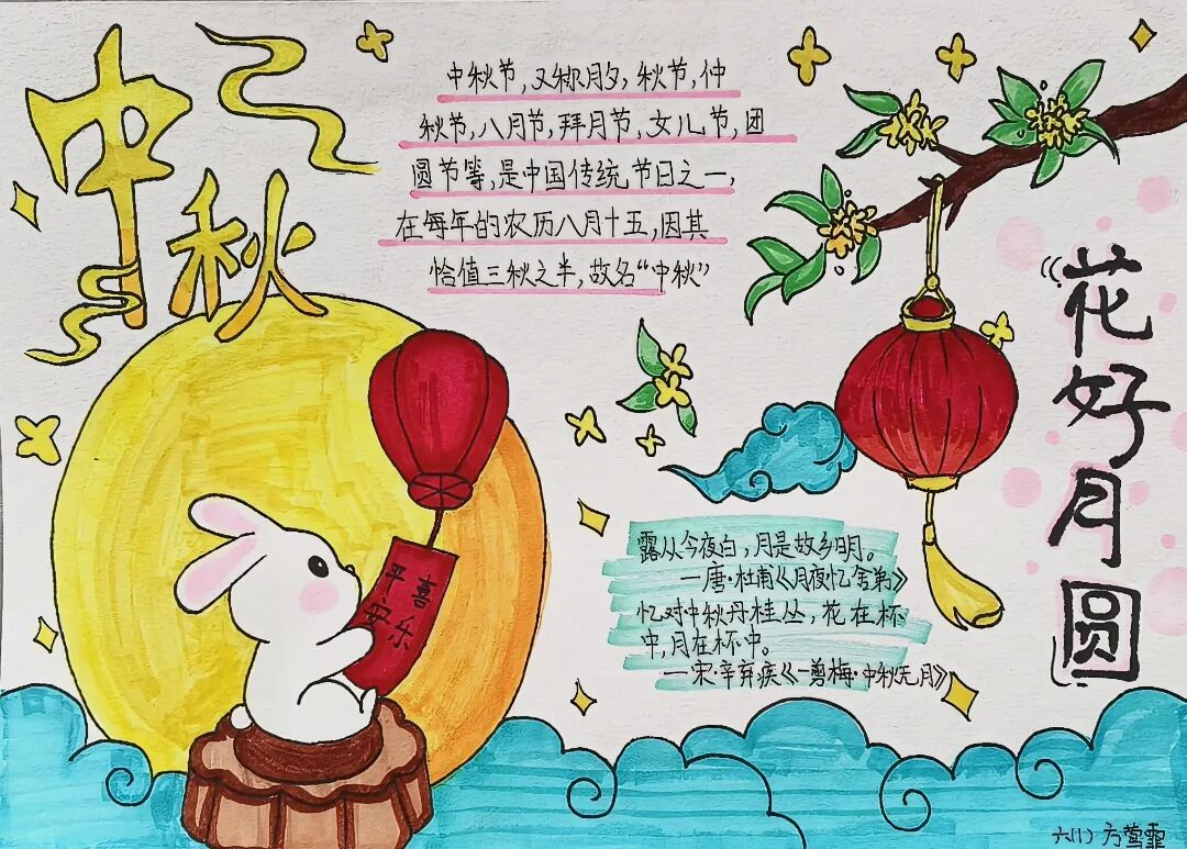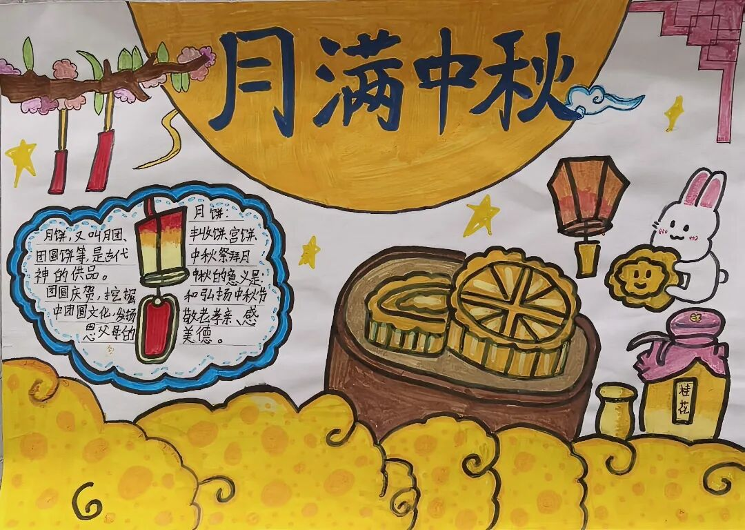 为表达对祖国的祝福与对中秋的期盼,同学们还拿起画笔,精心创作“国庆中秋”主题手抄报。一笔一划皆心意,一幅幅手抄报,既是同学们对中华传统文化的理解,也是对祖国母亲最真挚的告白,展现出新时代少年的家国情怀与艺术风采。