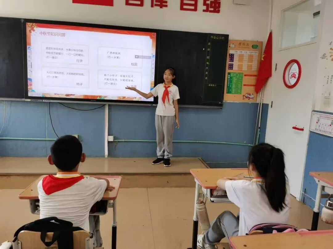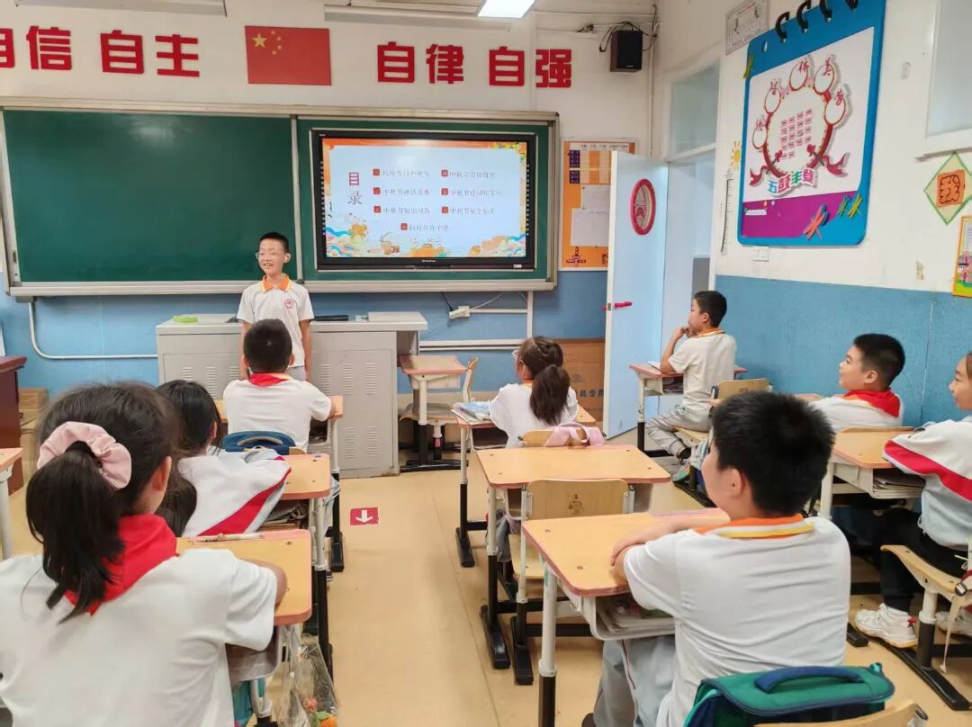 各班围绕“双节”主题开展特色班队会,课堂上,老师带领同学们追溯传统——从嫦娥奔月的神话传说,到中秋赏月、吃月饼的习俗由来,细细解读中秋节背后的文化内涵。