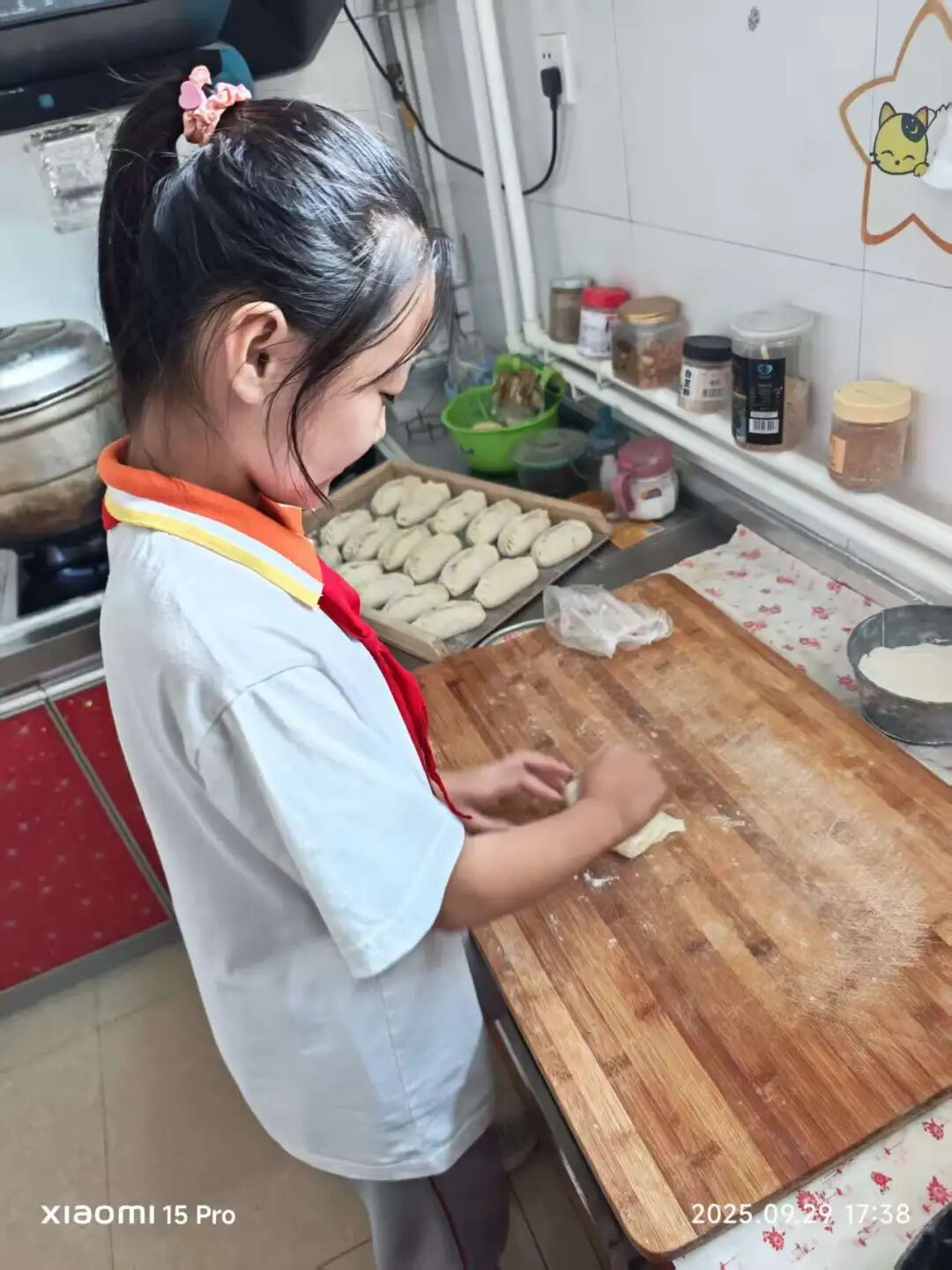 在美食创意实践中,孩子们不仅体会到劳动的快乐,更在与家人的互动中感受中秋“团圆”的温暖,让传统节日的氛围浸润每个家庭。