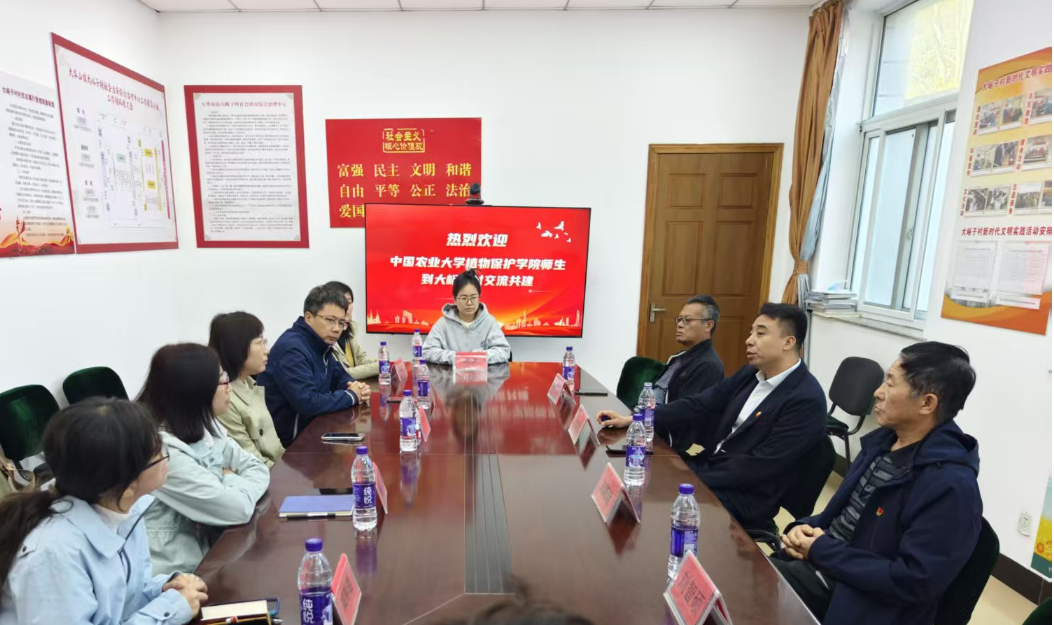 2025年10月13日上午,中国农业大学植物保护学院9名党员教授、博士生来到大华山镇大峪子村开展支部共建活动。双方就基层党组织建设创新、产学研协同育人机制、大桃产业提质增效等议题进行了深入研讨,共同绘制了校地合作发展蓝图。