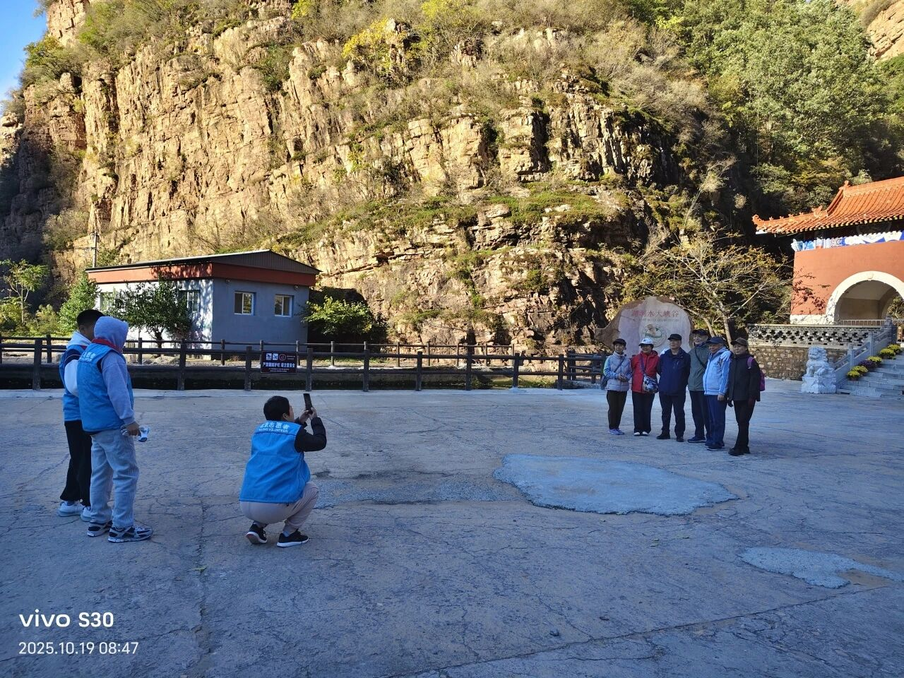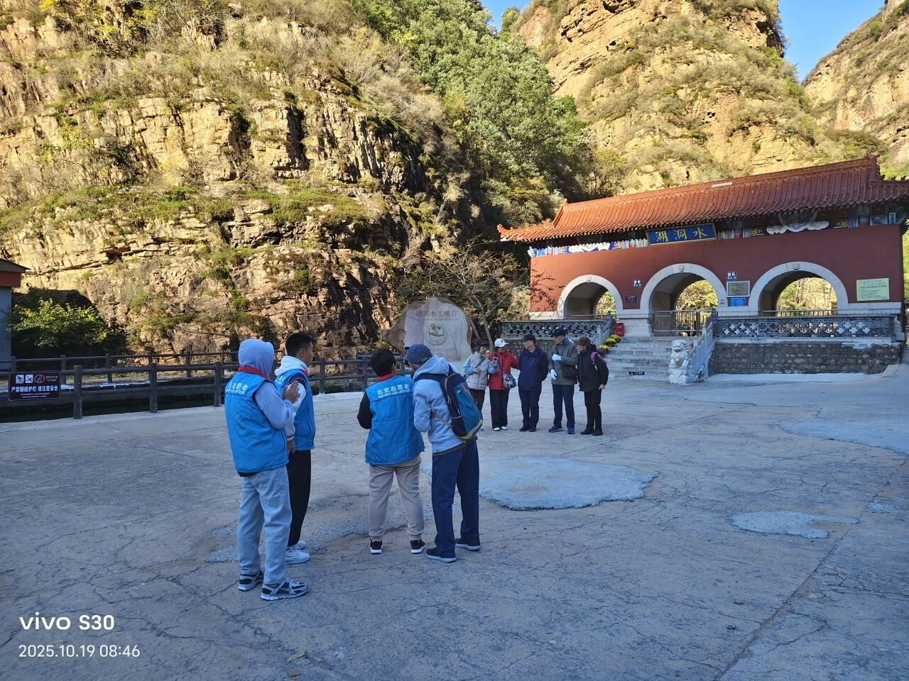 10月19日,北京市迎来寒潮天气,气温断崖式下跌并伴有大风。然而,严寒阻挡不住志愿服务的脚步。10名志愿者依然准时集结,于上午9点抵达黄松峪乡湖洞水景区,圆满完成了本年度“红色驿站 暖心服务”志愿服务项目的最后一次活动,为这个持续整个旅游旺季的暖心项目画上了温暖的句号。