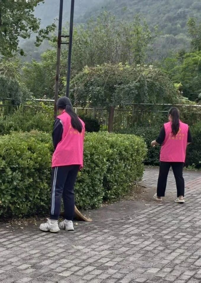 与此同时,室外清杂战场上也活跃着她们忙碌的身影。志愿者们不畏秋日凉意,积极投身户外环境整治。她们手持工具,分工协作,集中清理公共区域的杂草、枯枝,对平日里容易被忽视的卫生死角进行了彻底清扫。汗水浸湿了衣背,但她们的热情丝毫不减,用实际行动让乡村的公共区域变得更加清爽整洁。