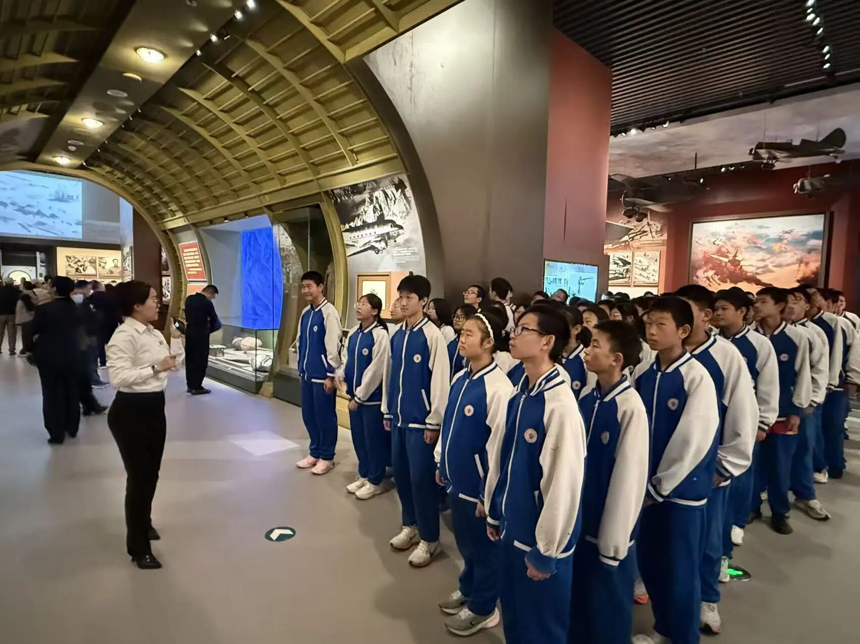在讲解员的细致讲解下,学生们时而驻足凝视,时而认真记录,时而低声交流,深刻感受到了革命先辈为国家独立、民族解放所付出的巨大牺牲,也更加明白了和平的来之不易。