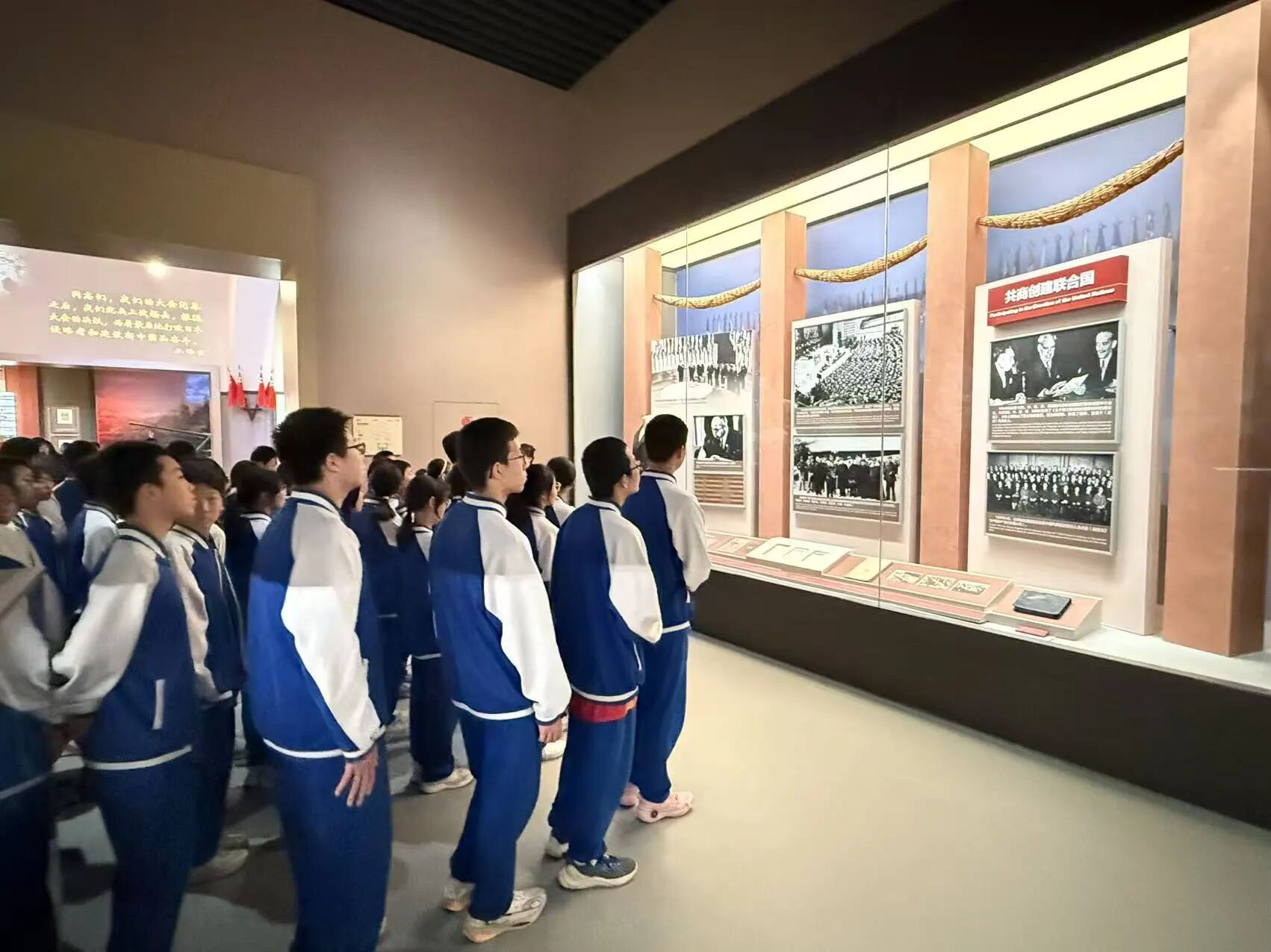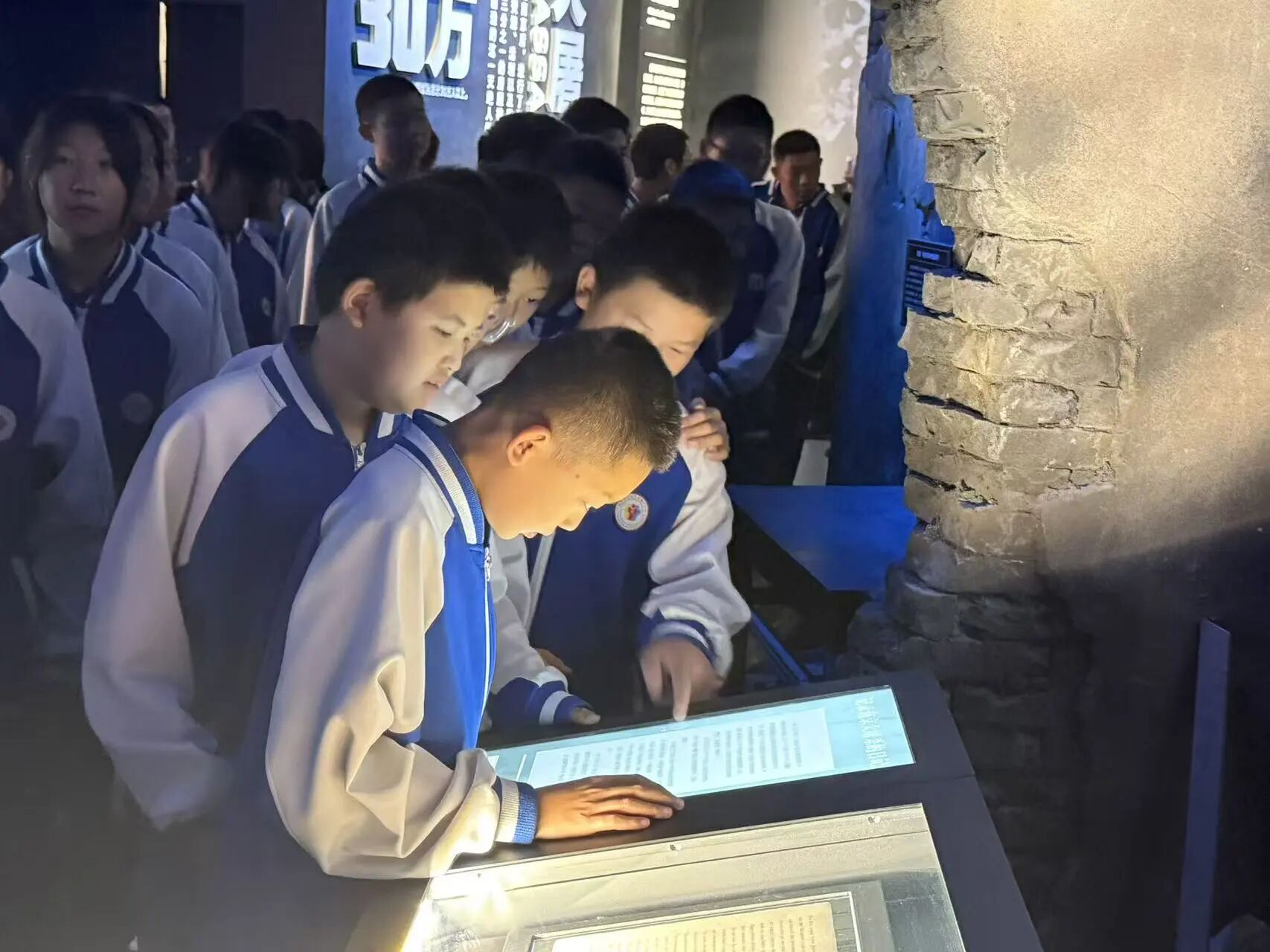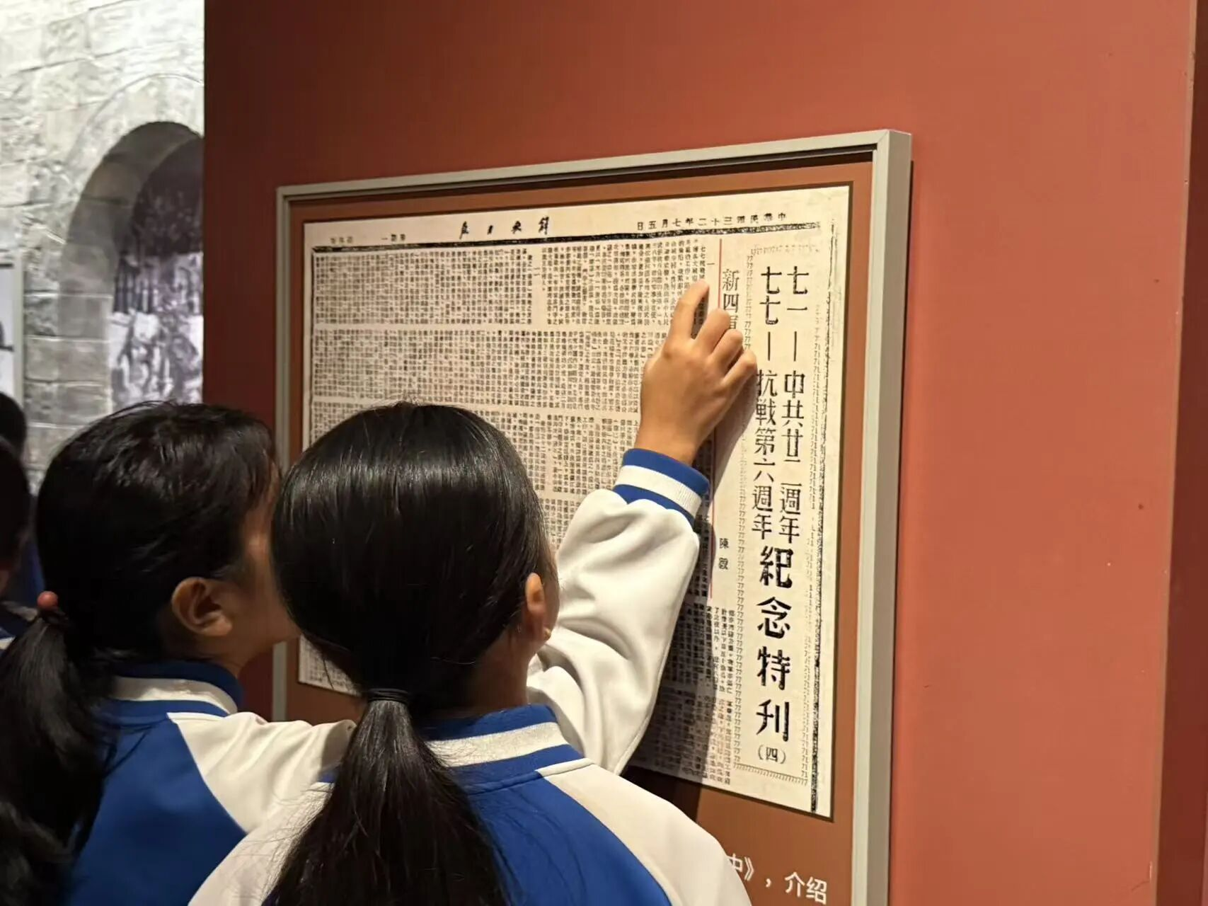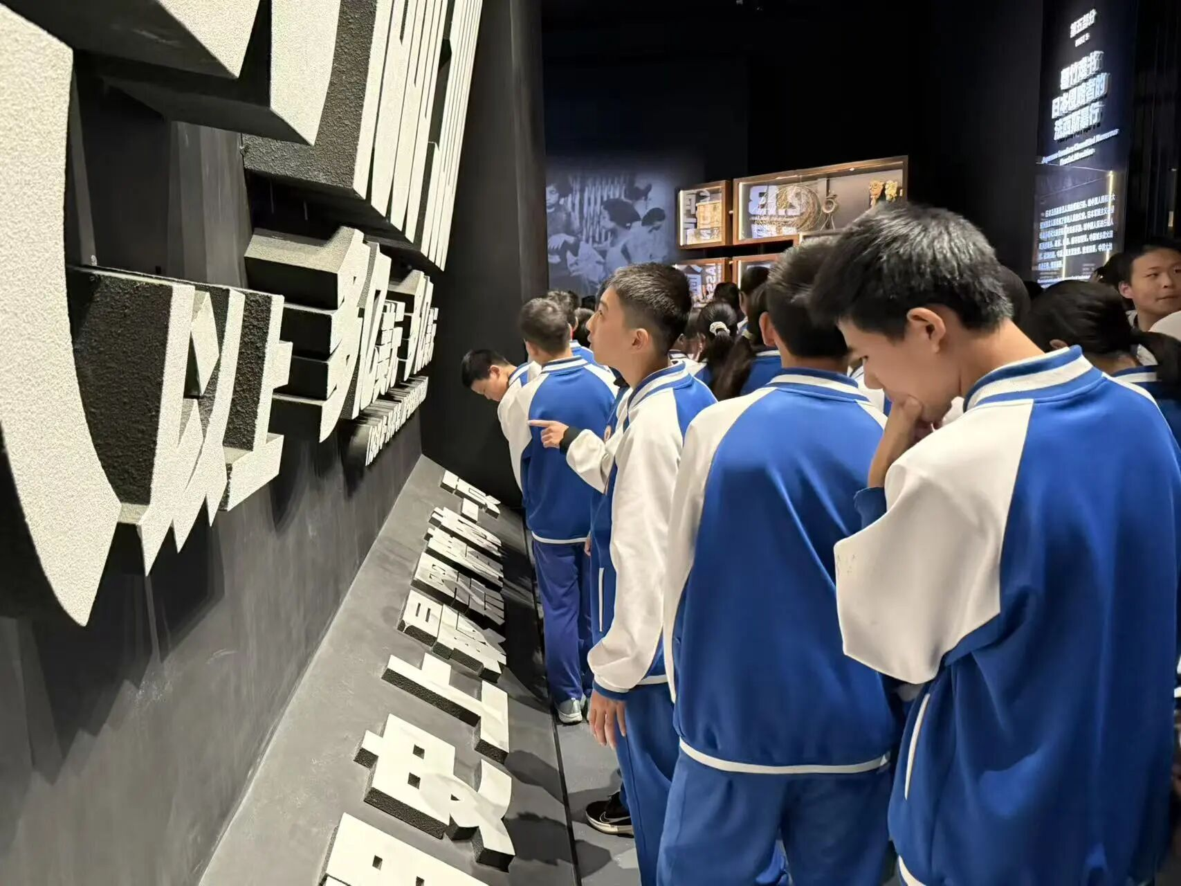走进展厅,一张张泛黄的照片、一件件承载着岁月的文物、一段段震撼人心的影像,将学生们带回那个风雨如晦的年代。