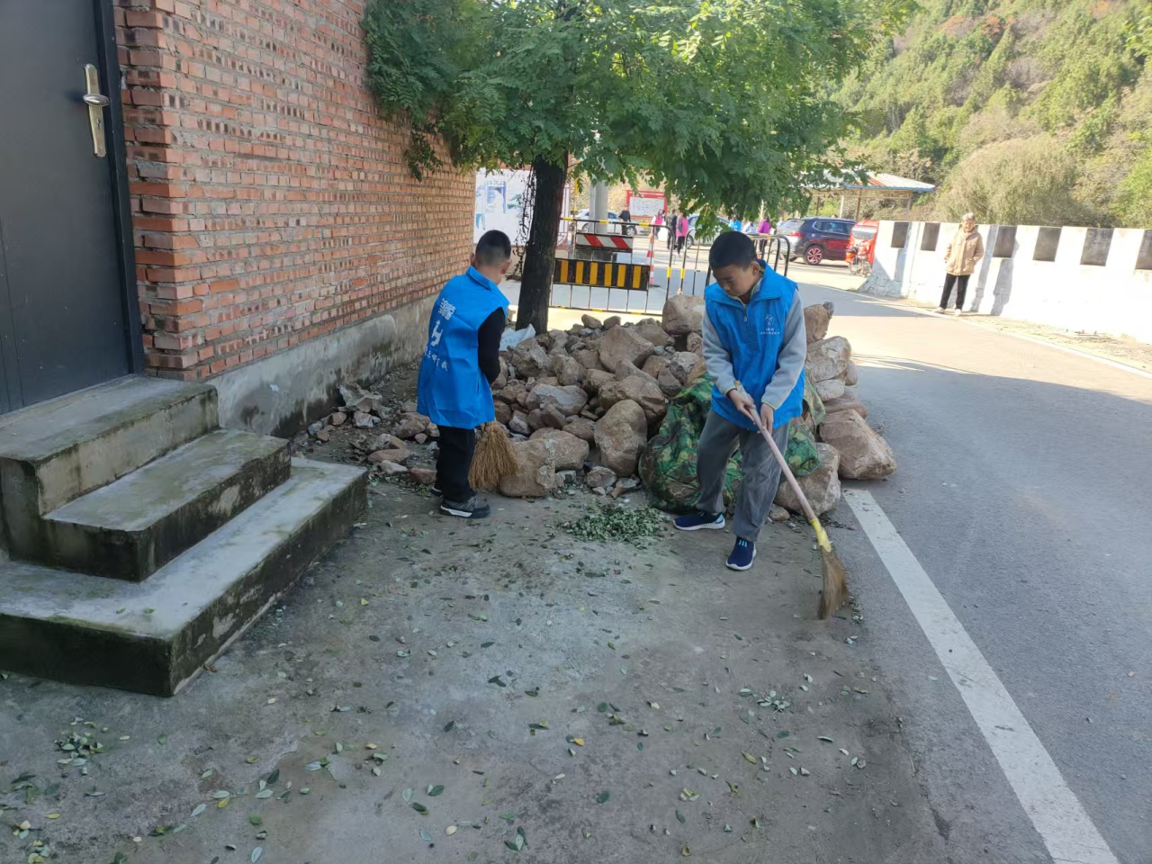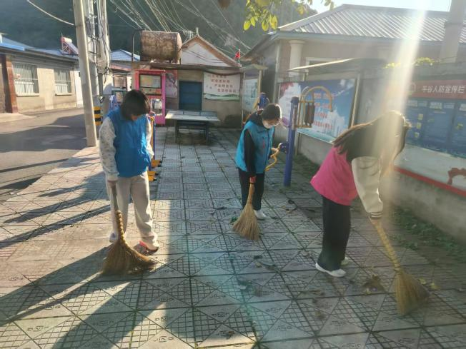 活动中,志愿者们身着蓝色马甲,手持扫帚、簸箕、垃圾袋等工具,迅速投入到清扫工作中。大家分工明确、默契配合,有人负责清扫路面落叶,有人细致捡拾角落杂物,也有人专注清运堆积的枝叶。尽管冷意袭人,志愿者们依然干劲十足,不畏脏、不惧累,忙碌的身影成为村中一道温暖而亮丽的风景。经过近三个小时的集中清理,村庄主干道及周边区域的落叶与垃圾被彻底清除,整体环境焕然一新。