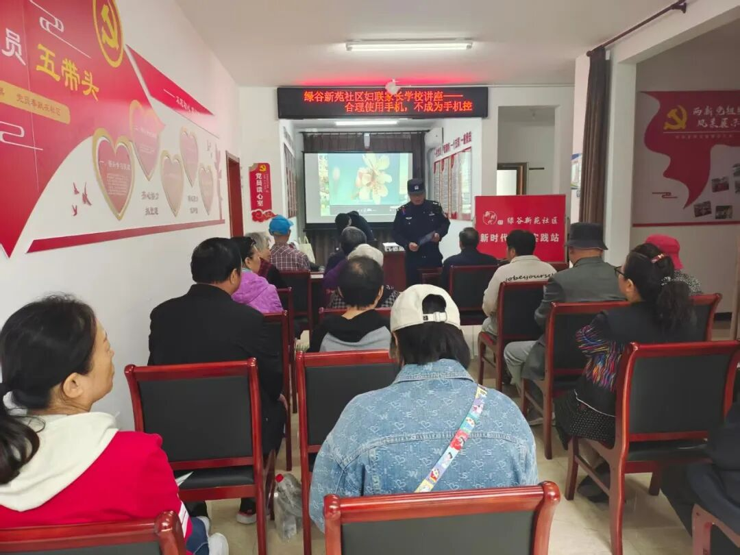 为进一步提升社区居民的生活质量,引导大家科学使用电子产品、增进家庭和谐、增强防范诈骗意识,近日,绿谷新苑社区精心组织了一场内容丰富、实用性强的综合知识讲座。活动特别邀请了妇联专家陈国红老师、法院资深法官以及包居民警担任主讲嘉宾,滨河街道党工委副书记、办事处主任张海霞亲临现场,并与居民们进行了亲切交流。