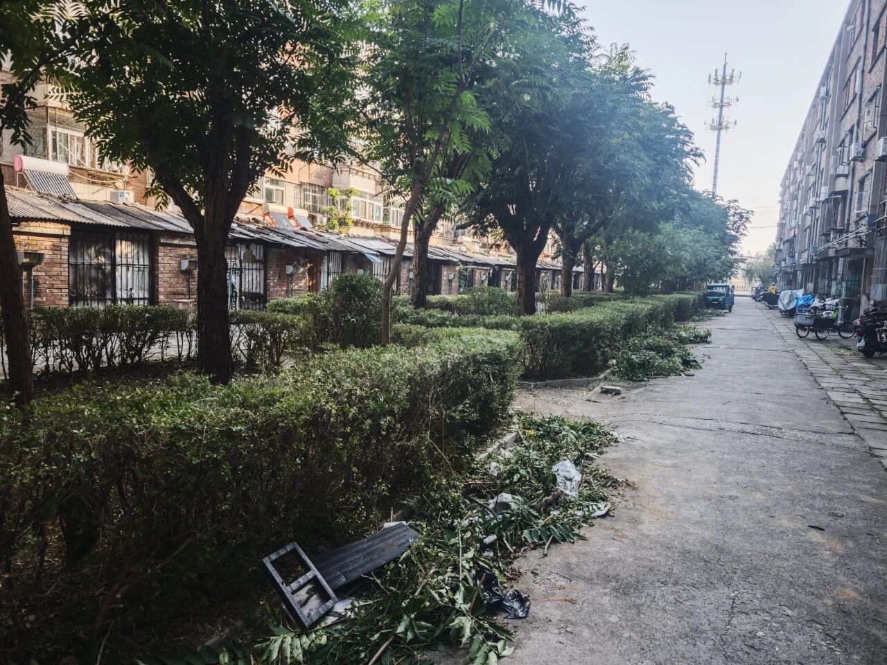 北小区部分楼栋绿篱因长期缺乏规范修剪,出现植株过高、枝叶杂乱、杂树丛生等问题。不仅遮挡视线、影响采光,形成安全隐患,还因枝叶密集成为垃圾、落叶的“藏身之处”,雨天易滋生蚊虫,大风天气易积存垃圾,成为居民反映强烈的环境痛点。