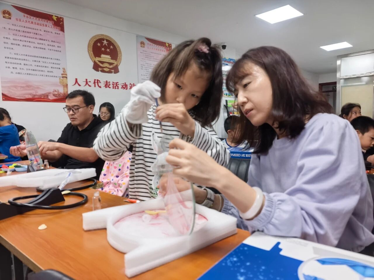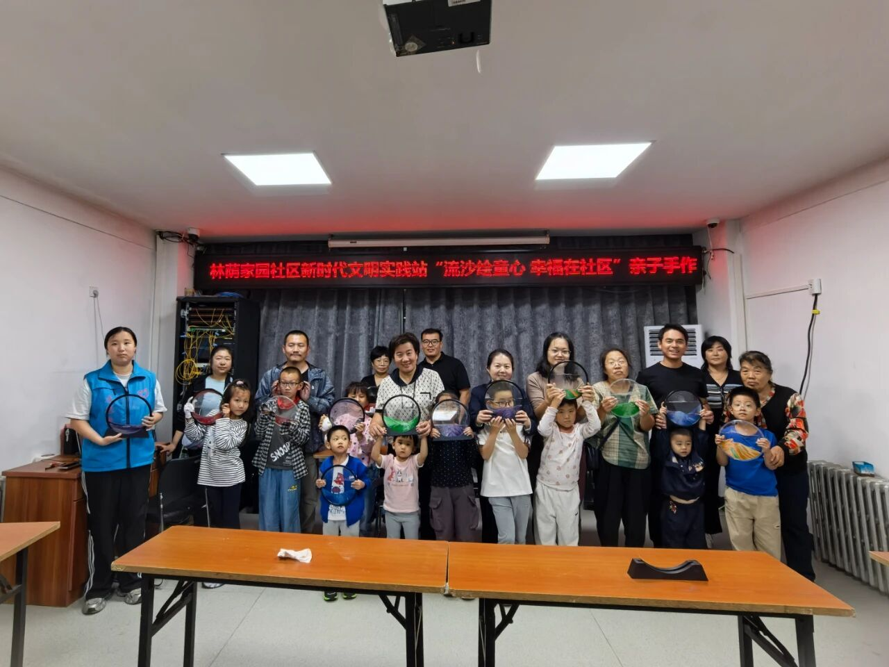 亲子手作活动制作环节中,各组家庭的创意层出不穷。亲子间分工明确:家长稳稳托住画框,孩子精准撒沙铺色,指尖轻点细沙勾勒细节。工作人员穿梭于现场,抓拍亲子协作瞬间,定格下亲子对视的笑容、共同创作的专注,为每个家庭留下专属纪念。