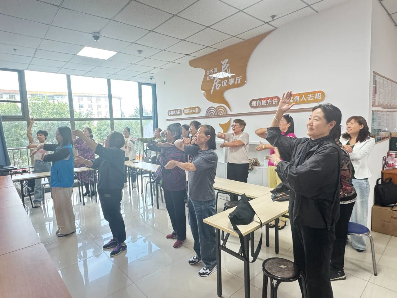 “悦运动悦健康”健身操活动现场,吸引了众多居民积极参与。大家认真跟随志愿者的节奏,从最初的动作生疏,到后来能熟练跟上节拍,现场充满了欢快的笑声与整齐的拍手声。
