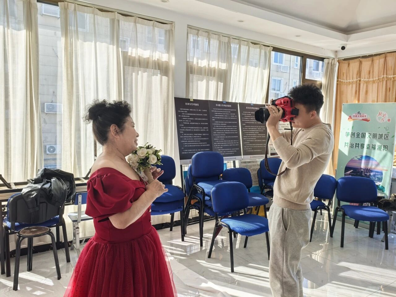 金秋送爽,又逢重阳。为弘扬敬老爱老的传统美德,丰富社区老年朋友的精神文化生活,10月20日,迎宾花园社区新时代文明实践站联合尊爵国际摄影机构举办了一场“情暖重阳”公益摄影活动,用镜头为辖区长者记录美好瞬间,送上了一份特别的节日祝福。