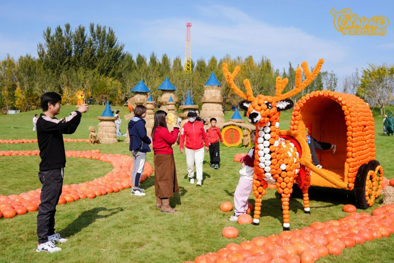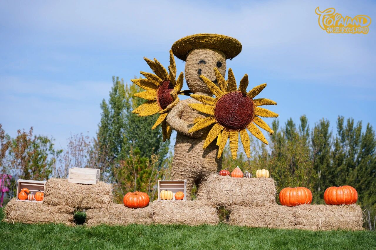 同时,园区布置桃源丰收季系列美陈景观,如南瓜步道、稻草艺术、眺望观景台等,让访客在游园的同时,可以逛玩不停,拍照打卡。