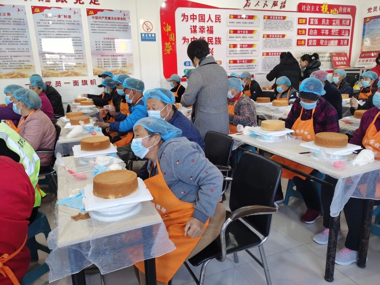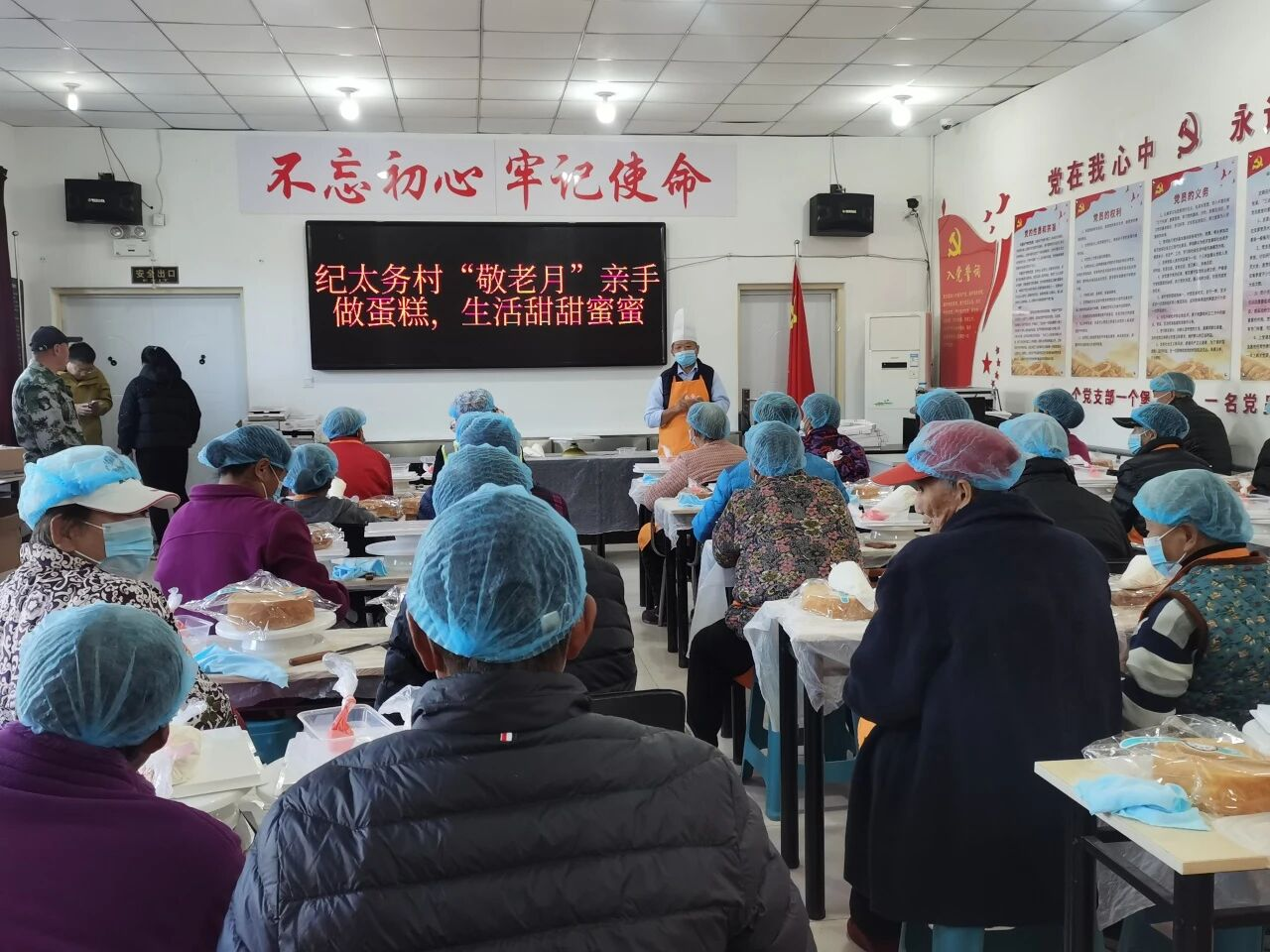 一缕缕甜香伴着欢声笑语,从纪太务村文化活动中心飘散出来。10月20日上午,一场名为“敬老月——亲手做蛋糕,生活甜甜蜜蜜”的活动在这里温情上演,全村30多位60岁以上的长者受邀参与。