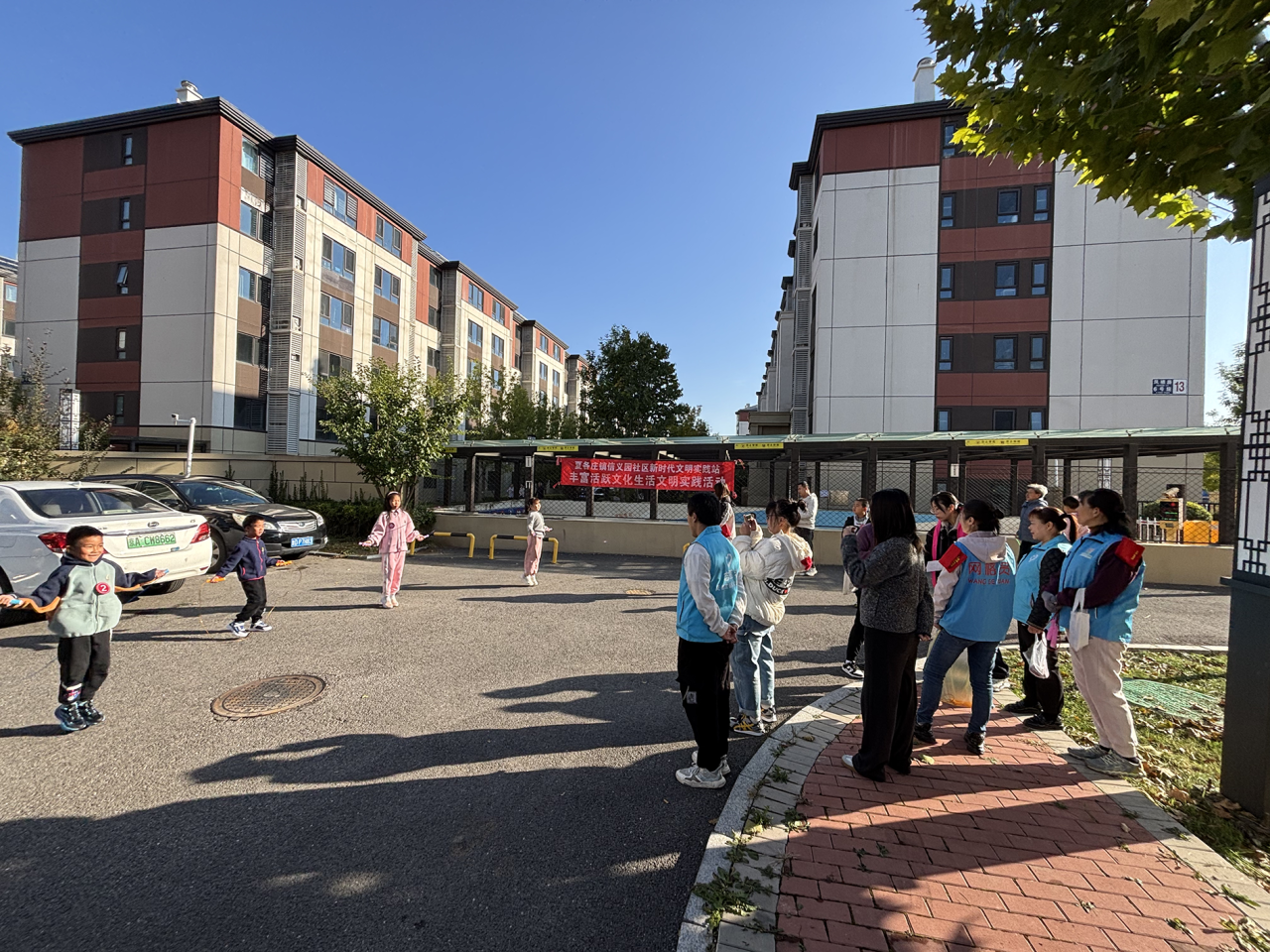 活动伊始,社区工作人员带领居民开展跳绳热身运动。现场居民热情高涨,单人跳、双人跳轮番上演,孩子们活力十足,老人们也积极参与,在轻松欢快的氛围中驱散寒意,拉近邻里距离,为后续手工活动预热。
