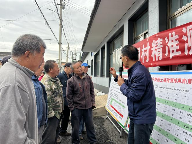 活动现场,教授团队以网格为单位,将严谨的土壤检测数据与生动的田间展示相结合。农户们不再是对着枯燥的数字“猜状况”,而是能直观、精准地看清自家桃园土壤的酸碱度、养分含量等实际情况。针对每一份土壤检测报告,教授团队还量身定制了水肥管理方案,从“该施什么肥”到“何时施、施多少”,一一细致讲解,同时现场解答农户们在日常种植中遇到的各类难题,让大家听得懂、学得会、用得上。