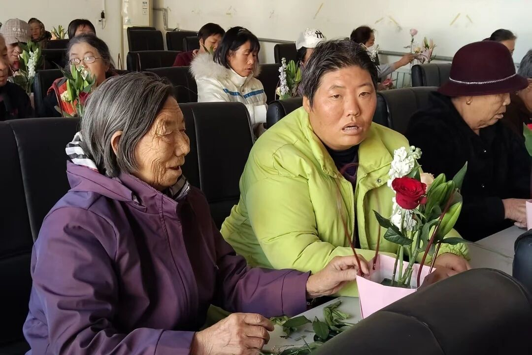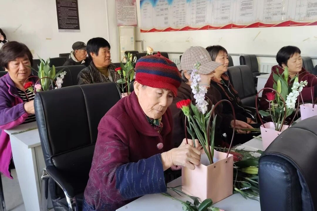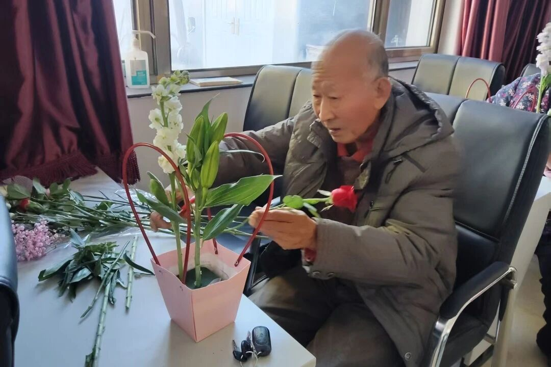 活动中,一幕幕温馨的画面不断呈现:有儿子耐心协助残疾母亲修剪花枝,手把手帮助调整花束造型;有老伴推着轮椅上的残疾老人,一起挑选心仪的花材,轻声交流配色心得;还有年迈的母亲陪伴残疾女儿,在花艺老师的细致指导下共同完成作品。大家专注地打理手中的鲜花,在剪枝、搭配与插制的过程中体验创作的乐趣,彼此交流心得。现场花香与笑声交织,快乐而温馨的氛围感染着每一个人。