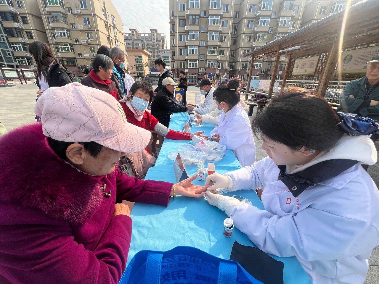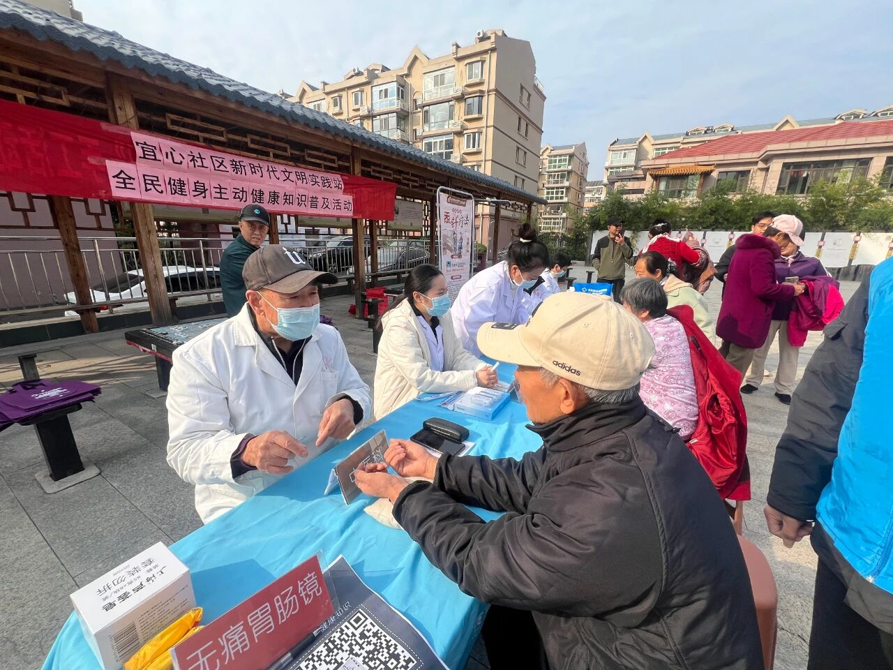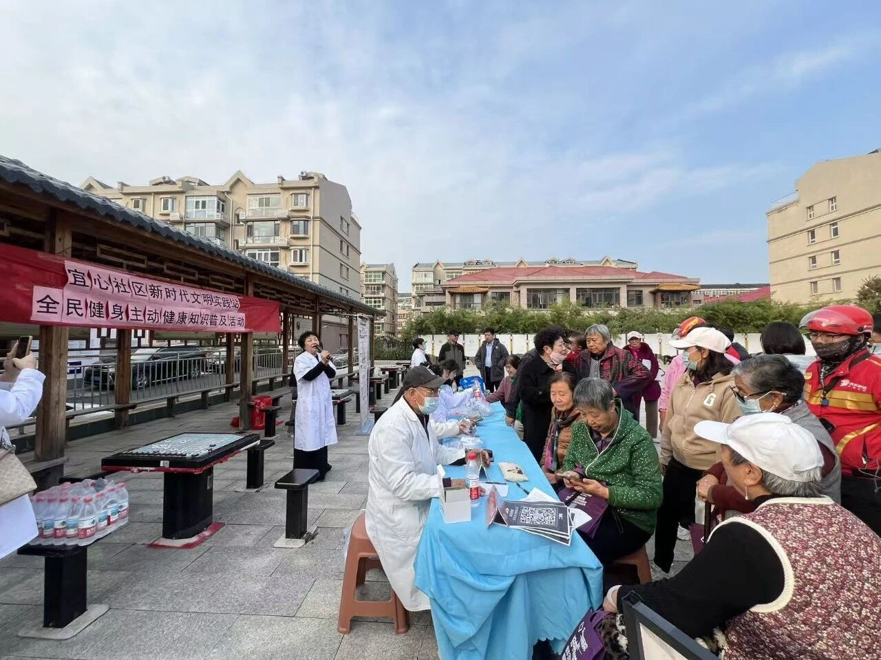 活动伊始,北京京谷友好医院以“运动赋能健康”为主题开展科普宣讲。医生用通俗易懂的语言,细致讲解规律运动对增强免疫力、改善心肺功能、缓解身心压力的重要作用;同时结合社区老年群体行动特点,针对性分享适合的运动强度与防护技巧,切实引导居民树立科学健身意识。宣讲结束后,医院志愿者为居民免费提供中医把脉、血压测量、血糖检测等健康服务;辖区商户也主动上前,手把手教授居民通过穴位按摩缓解疲劳、改善睡眠的日常保健技巧,助力大家轻松掌握实用养生方法。