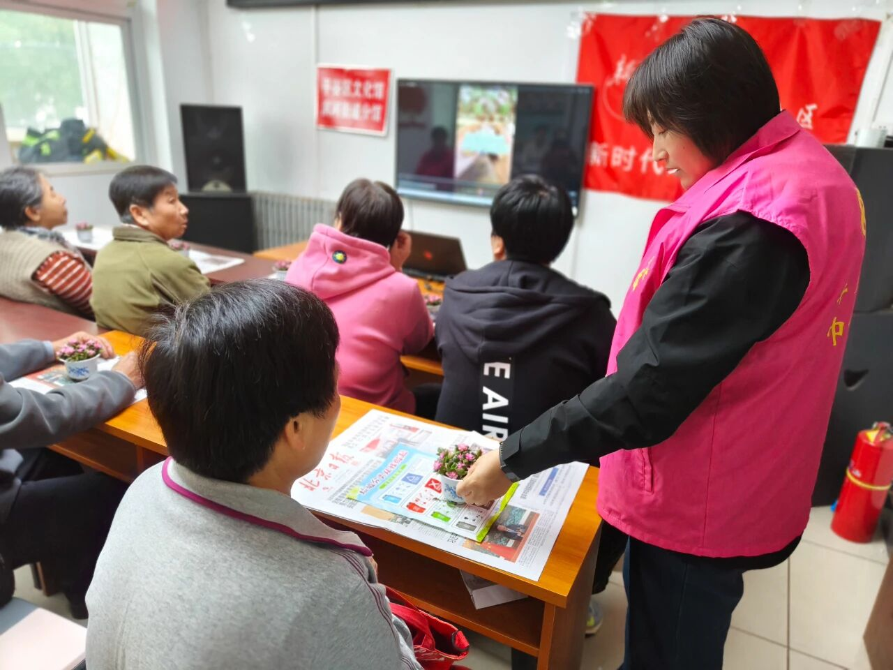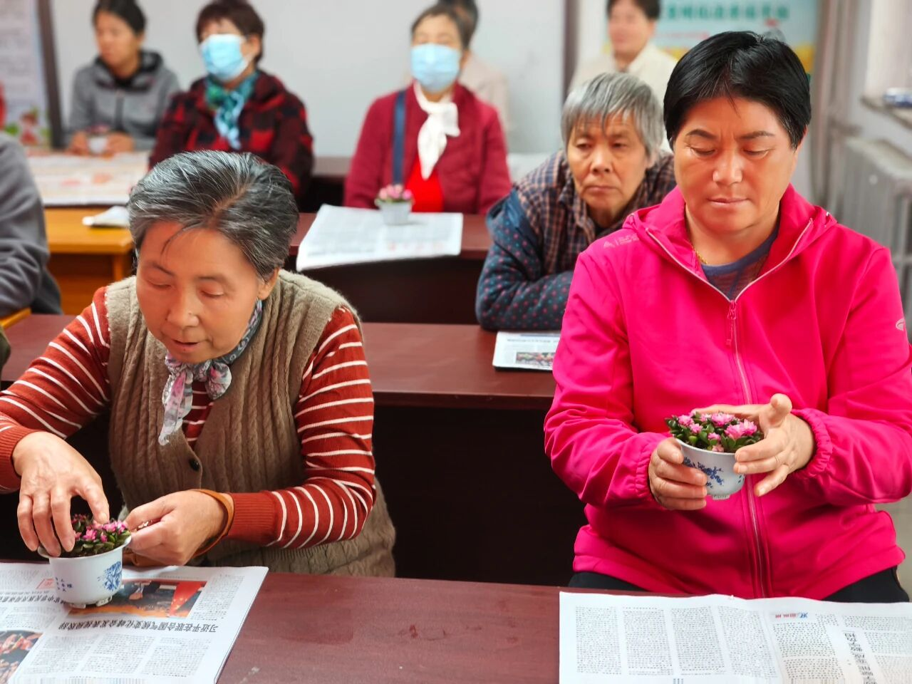 活动现场,社区志愿者采用“视频教学 + 实践指导” 的模式,先通过生动的视频短片,清晰讲解多肉植物的生长习性、土壤配比、浇水技巧及日常养护要点;随后手把手指导居民操作,从挑选“吹雪锦”多肉苗,到填入营养土、调整植株位置,每一个步骤都指导得细致耐心。居民们专注投入,互相交流种植心得,亲手将形态可爱的多肉苗栽入花盆,现场满是欢声笑语,一片温馨热闹的景象。