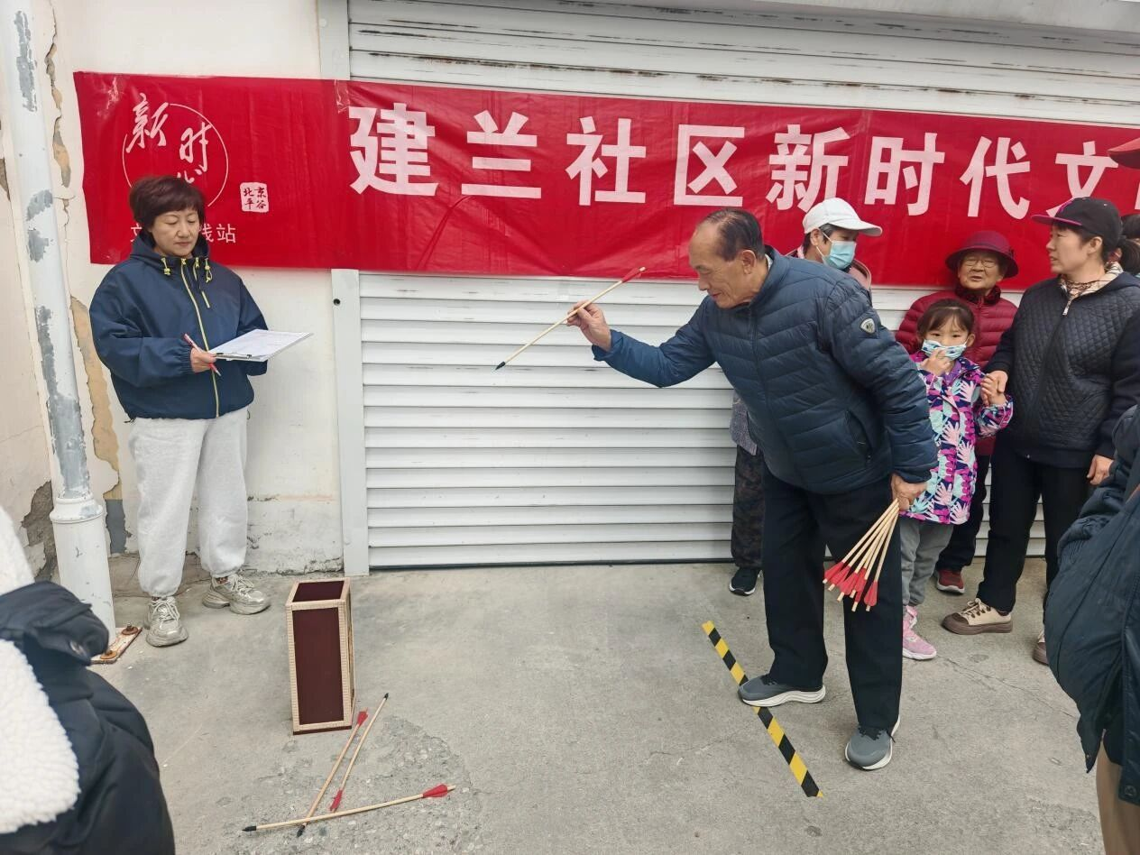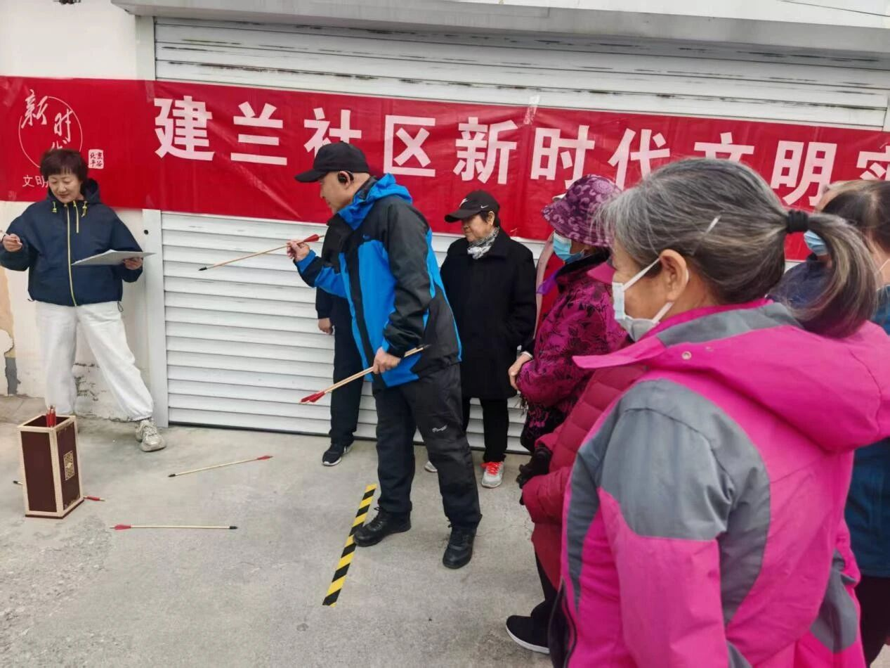 为丰富居民文化生活,增进邻里感情,10月22日下午,建兰社区党群服务中心、新时代文明实践站在建设街6号8号小区楼下举办了“古韵投壶乐,邻里一家亲”传统趣味投壶活动,吸引了众多居民热情参与。