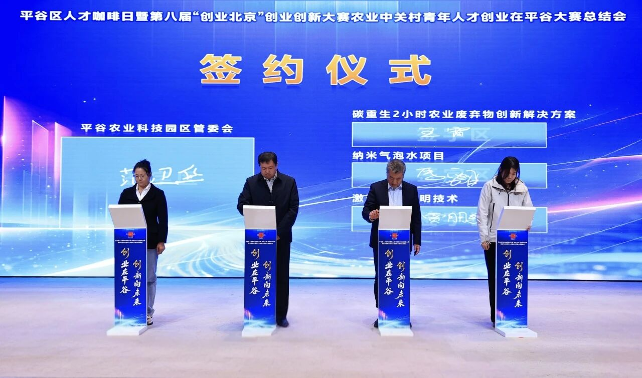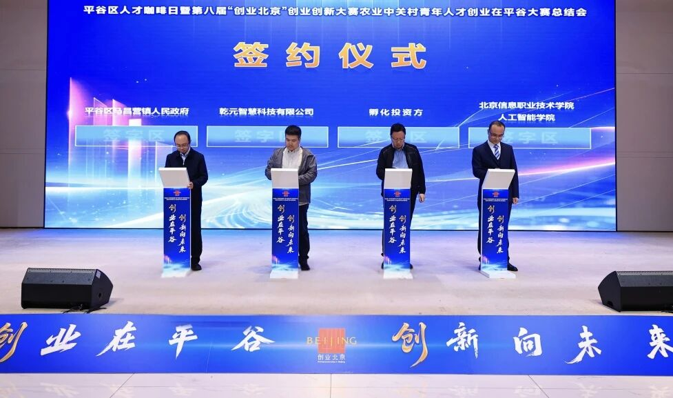 活动现场举行多轮签约仪式。国家(中关村)火炬科创学院农业科技产业基地、平谷农业科技园区管委会、马昌营镇政府分别与多模态中草药智能除草机器人、碳重生农业废弃物创新解决方案、“小红爪”宠物生命全周期服务平台等项目签约,通过“政企产学研”协同联动,将赛事成果从“创意方案”转化为“产业实体”。部分项目实现校地合作落地,为区域产业发展注入新动能。