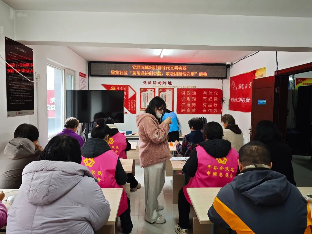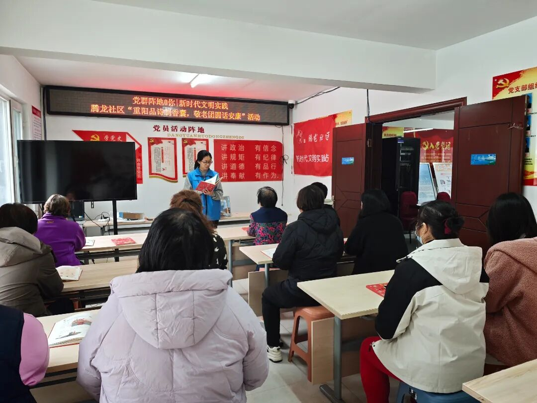 岁岁重阳,今又重阳。为弘扬中华优秀传统文化,丰富社区老年人的精神文化生活,腾龙社区近日组织开展“重阳品诗制香囊 敬老团圆话安康”主题活动,陪伴社区长者共度一个温馨祥和的重阳佳节。