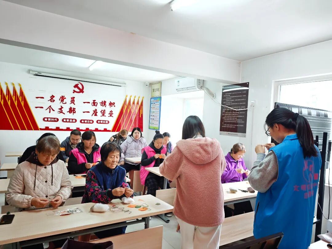 手工制作环节是本次活动的亮点。在老师的细致指导下,老人们兴致盎然地穿针引线,亲手缝制“柿柿如意”主题香囊。大家一边交流制作心得,一边闲话家常,活动现场气氛温馨,笑语不断。不一会儿,一个个小巧精致、寓意美好的香囊陆续完成,老人们手捧自己的作品,脸上写满了喜悦与成就感。