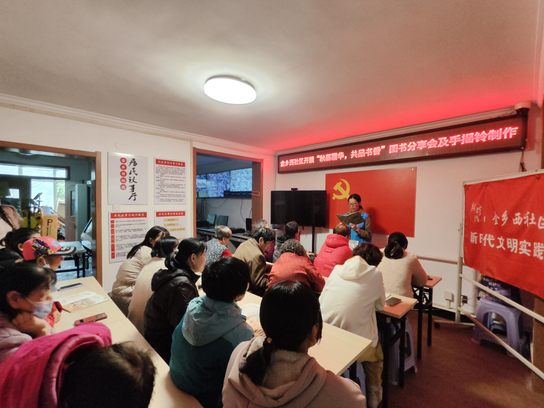 10月23日,金乡西社区精心策划并举办“秋暮霜华,共品书香”主题文化活动,以传统节气“霜降”为契机,融合知识讲解、图书分享与手工体验,吸引了辖区20余位居民踊跃参与,大家在互动交流中走近节气、品味书香,共赏秋日之美。