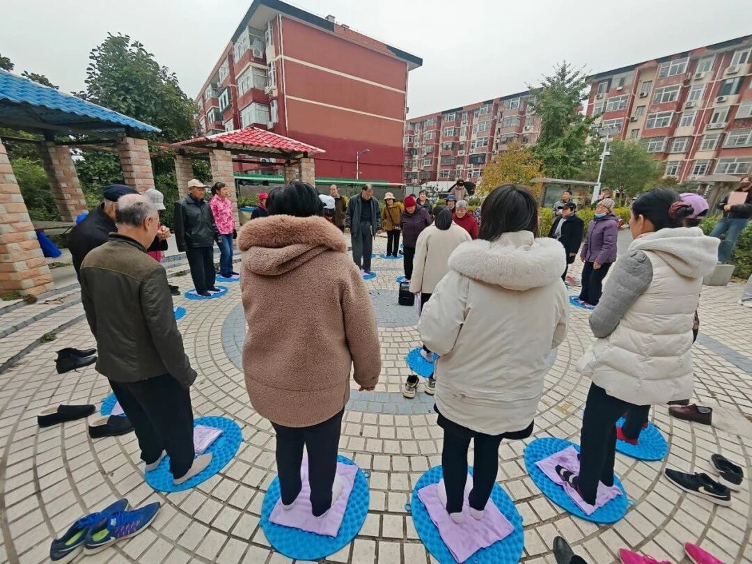 大家早早来到活动现场签到,领取指压板和毛巾。社区工作人员简单介绍活动后,为居民放好节拍器声音。居民们脱鞋上阵,踩在凹凸有致的指压板上,一边原地慢跑,一边互相加油鼓劲。虽然脚底酸麻,但大家脸上都洋溢着笑容,现场气氛热烈又温馨。不少居民表示:“踩上去有点疼,但跑完感觉全身都轻松了,既锻炼了身体,又释放了压力!”