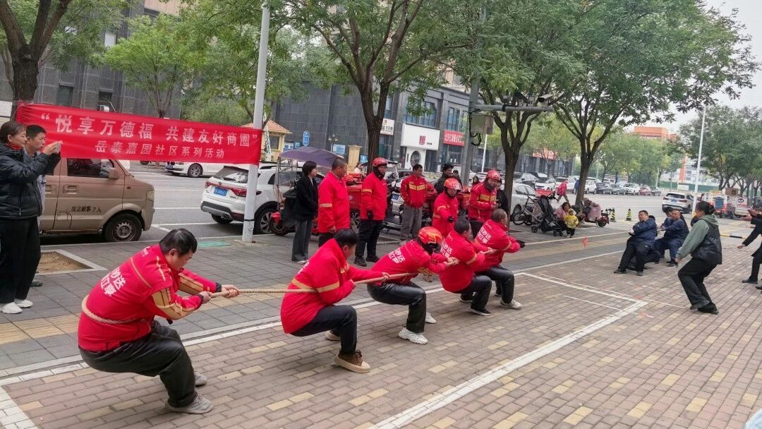 为增强社区凝聚力,努力营造积极向上、健康文明的氛围,展现振兴社区团结协作、奋勇当先的精神面貌。近日,岳泰嘉园社区组织开展了“悦享万德福 共建友好商圈”系列活动——拔河友谊赛。此次比赛吸引了辖区商户、两新从业人员、辖区友好单位的大力支持和踊跃参与,现场气氛热烈非凡,充分展现了大家团结拼搏、奋勇争先的精神风貌。