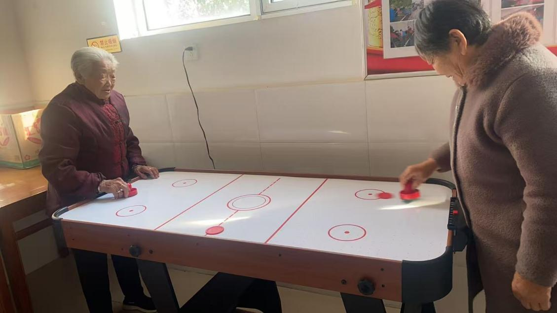 桌上冰球:把竞技的快乐“搬”到桌面,老人在推杆击球的过程中,既锻炼了肢体协调性,又在“你追我赶”的互动里找回青春活力,让敬老月的日子充满欢声笑语。