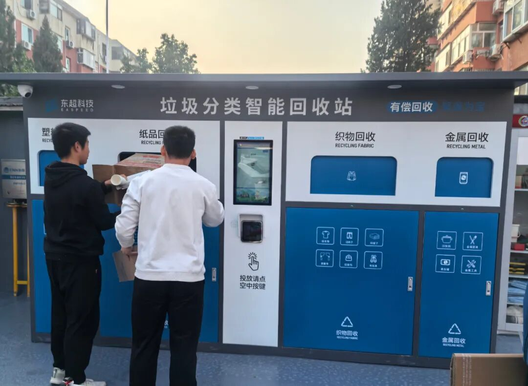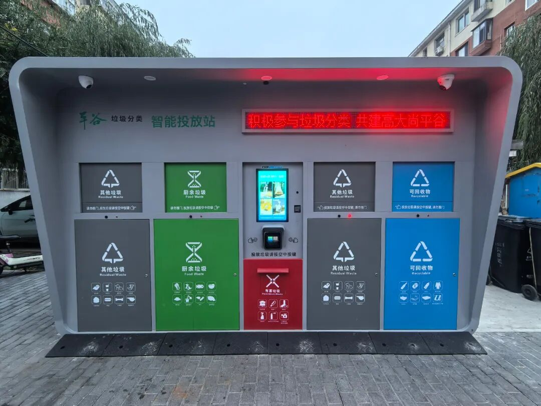 滨河社区还同步增设1个垃圾分类智能回收桶站,支持纸类、塑料、金属等可回收物精准投放,配备智能称重、高清监控与满溢提醒功能,既方便居民变现,也便于可回收物及时清运。