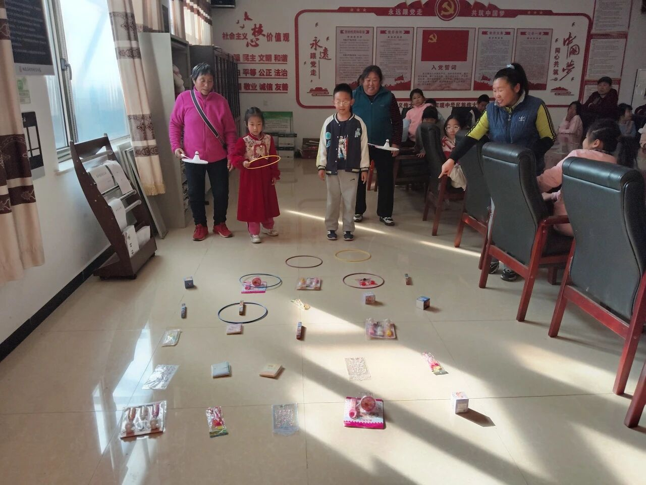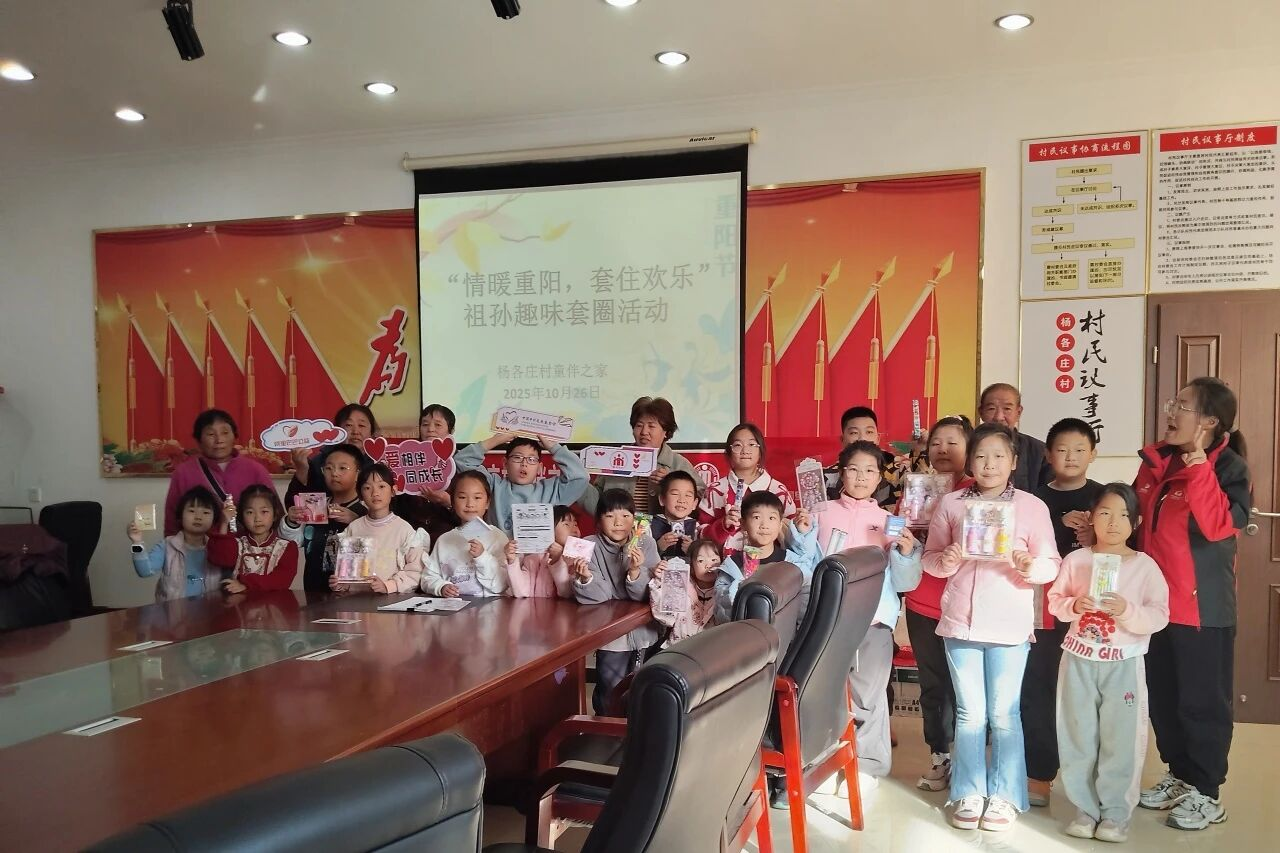 10月26日,杨各庄村在童伴之家活动室举办祖孙趣味套圈活动,15组家庭共60人参与。