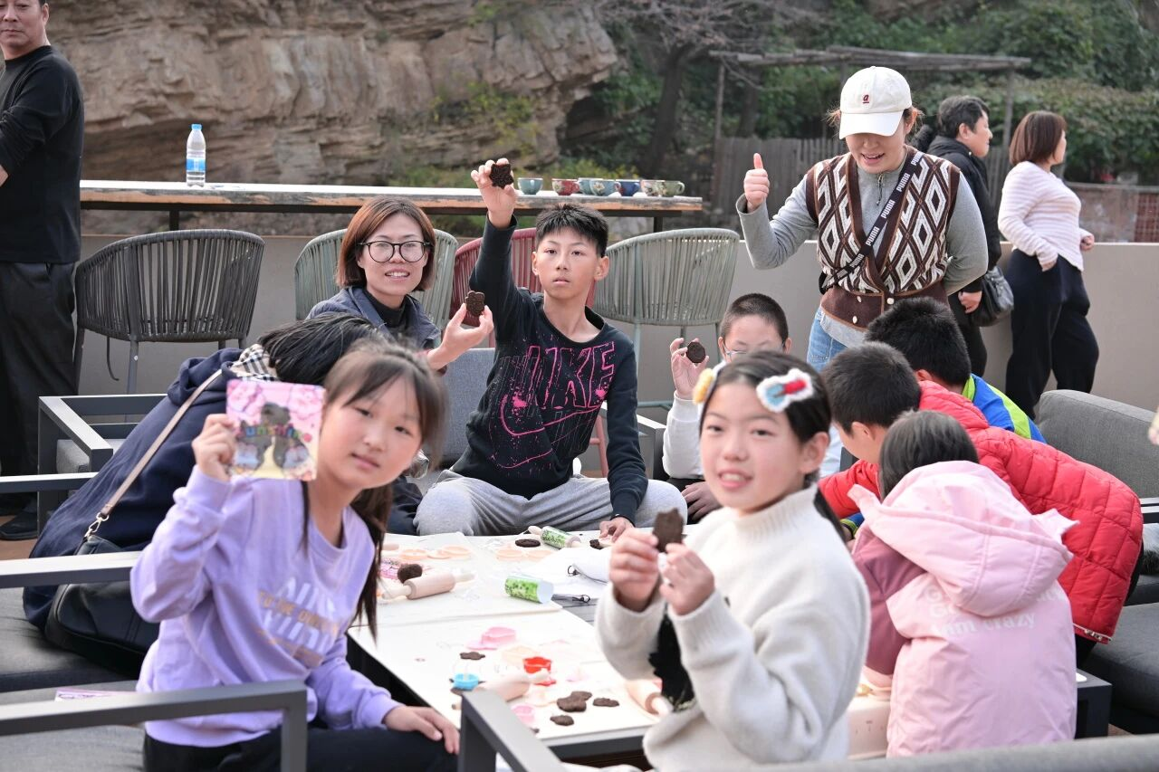 与此同时,在“与子山隐”咖啡店内,返乡青年正带领孩子们将咖啡渣压模、晾晒,制成一块块古朴雅致的手工香牌。从“废弃物”到“资源”的转变,不仅直观诠释了“无废乡村”的环保理念,也让低碳生活、循环农业的种子在亲子协作中悄然生根。