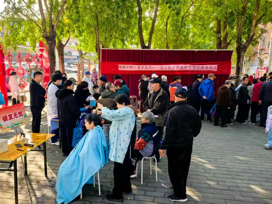 北小区社区开展“情暖夕阳・爱在社区”重阳节免费便民活动。现场分健康与便民专区,健康区测血压血糖、查口腔;便民区理发、教手机操作。老人们纷纷表示学会了实用技能,享受了贴心服务,节日过的非常有意义!