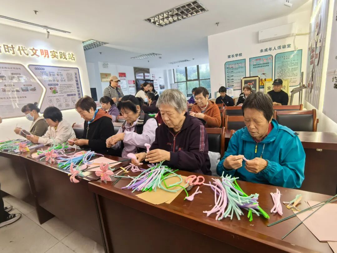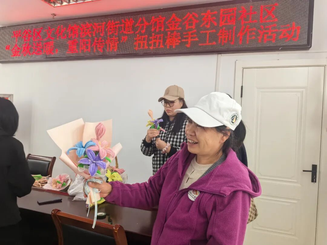 金谷东园社区开展“金秋送暖,重阳传情”扭扭棒手工活动。老师备齐材料并分步示范制作方法,老人们积极参与、互帮互学,制作出各异的花束手工作品。居民表示活动让自己学技能、交邻里,度过了一个难忘的重阳节。