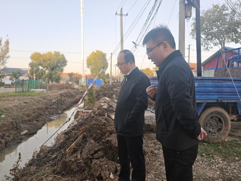 巡查检查中,工作组首先来到东双营村雨水沟渠点位。该点位曾存在垃圾、树枝堆放问题,村里已第一时间完成清运整改;并针对该沟渠无盖板、环境脏乱、易形成垃圾点位等问题,开展提升改造,联系施工方确认方案可行性并推动实施,既解决当下排水问题,也从根源杜绝杂物堆积。检查组重点检查该点位问题原因分析、溯源治理,并对改造工作进行现场指导。目前沟渠清整完毕,主体施工正有序推进。随后,工作组前往西双营村,复查前期关注的坑塘、河道等点位,确认点位已整改彻底,水体清澈、岸坡整洁,日常管护机制有效落实,无反弹情况。