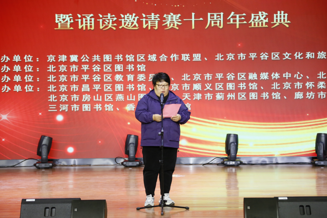随着北京第二实验小学平谷分校学生演绎的《曙光》登台,诵读邀请赛正式开赛。来自三地的60余位选手分为个人组、集体组,围绕 “红色经典”“歌颂祖国”“美好生活”三大主题展开角逐。最终,三河市图书馆选送的《永远飘扬的红头巾》摘得个人组一等奖,平谷区图书馆选送的《等待》斩获集体组桂冠。