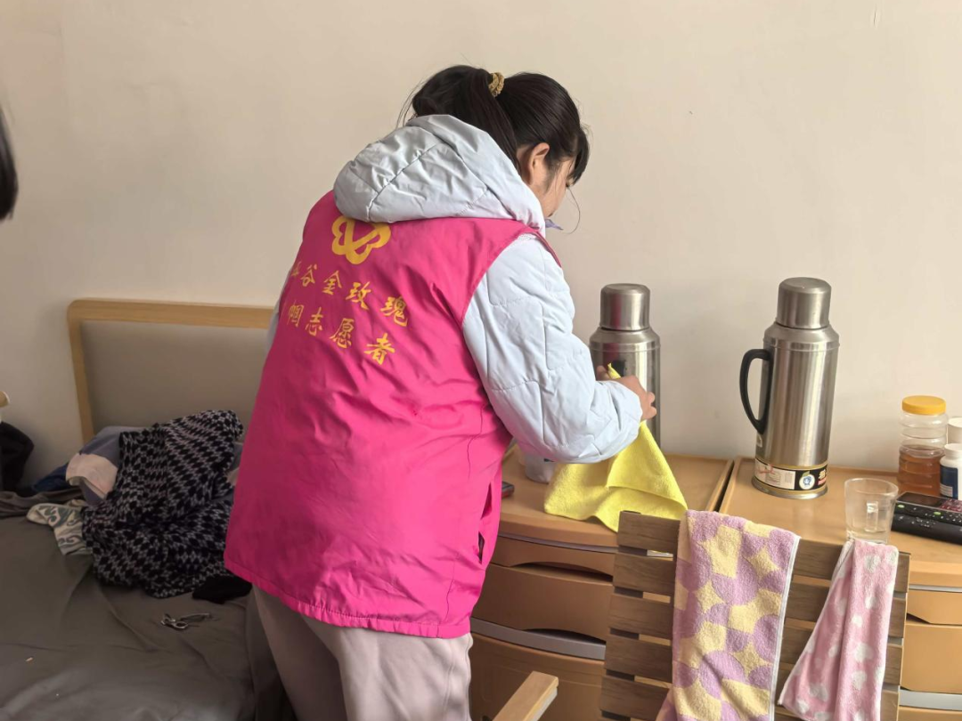大旺务村:志愿者们走进大旺务村幸福晚年驿站,帮忙收拾屋子、打扫卫生,将房间整理得井井有条。同时,仔细询问老人身体情况,了解生活中的困难,用实际行动为老人筑起“温暖防线”。