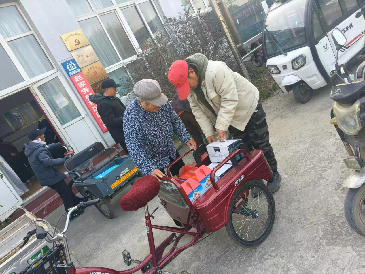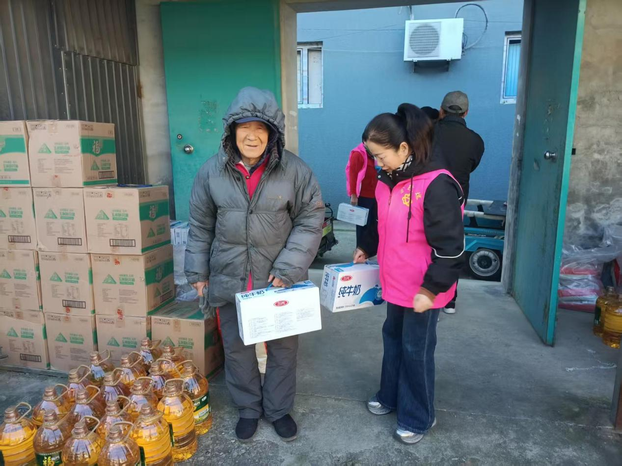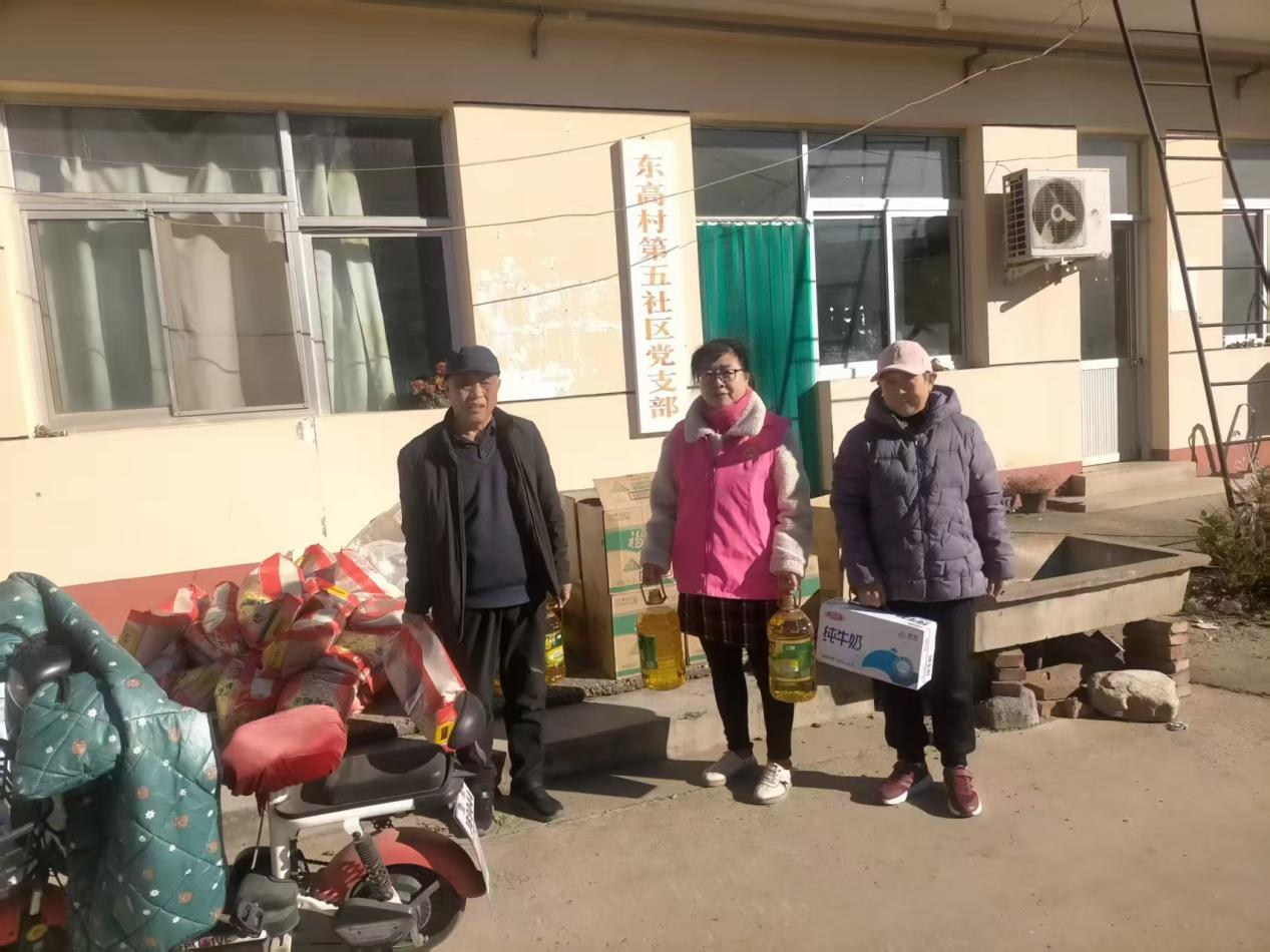 东高村村:村“两委”干部与志愿者提前谋划、精心采购,为村内 80 岁以上老人送上米、奶、油等生活慰问品。一份份物资承载着对老人的牵挂,让老人们在节日里感受到实实在在的关怀。